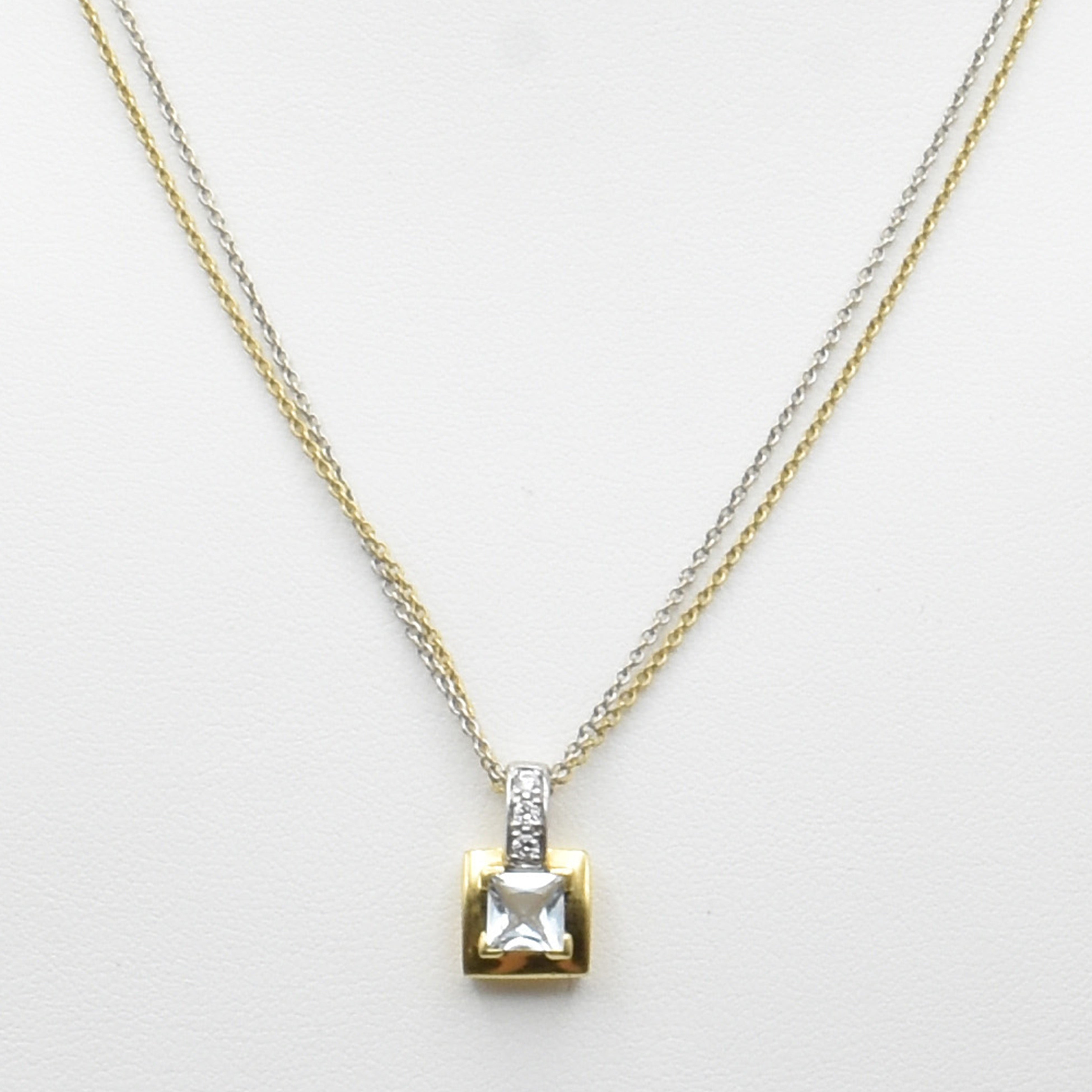 Collier en or jaune et blanc 18 ct serti de 3 brillants +/- 0.09 ct (pierre de couleur) - 5.7 g brut (42.5 cm)