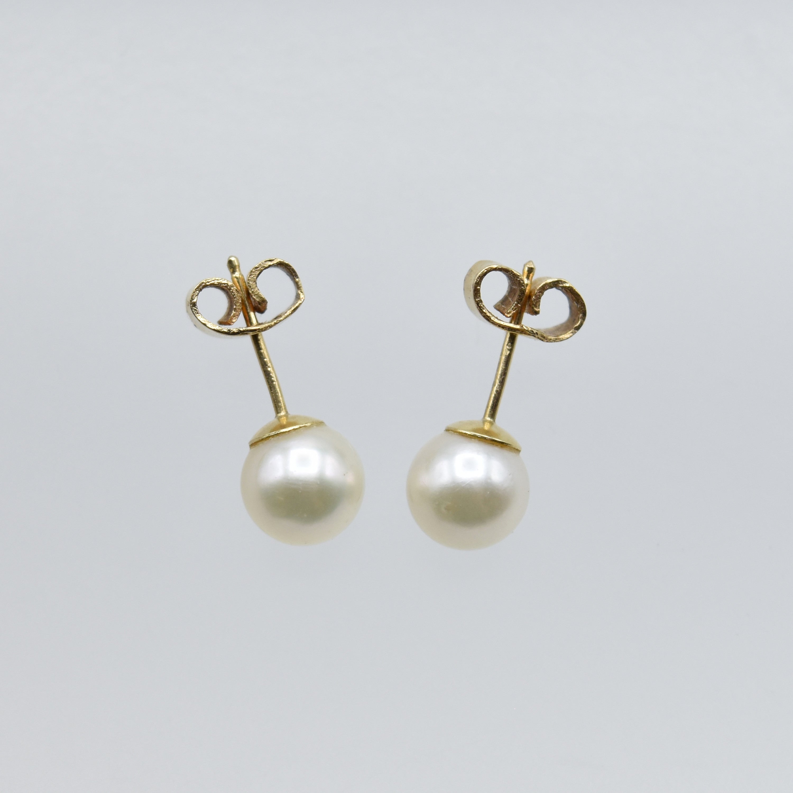 2 boucles d'oreilles en or jaune 14 ct serties de 2 perles - 1.3 g brut