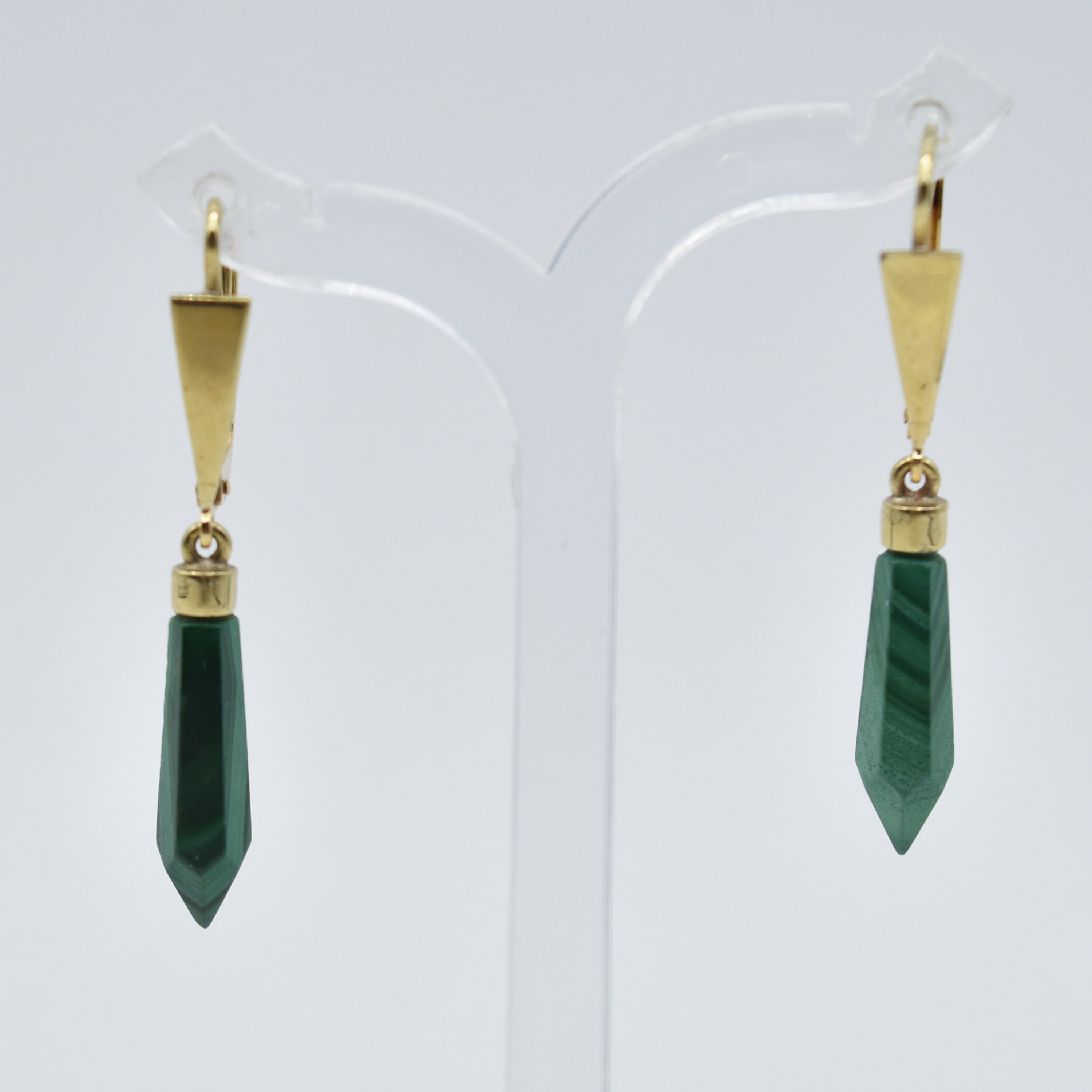 2 boucles d'oreilles en or jaune 9 ct serties de 2 malachites - 3.2 g brut