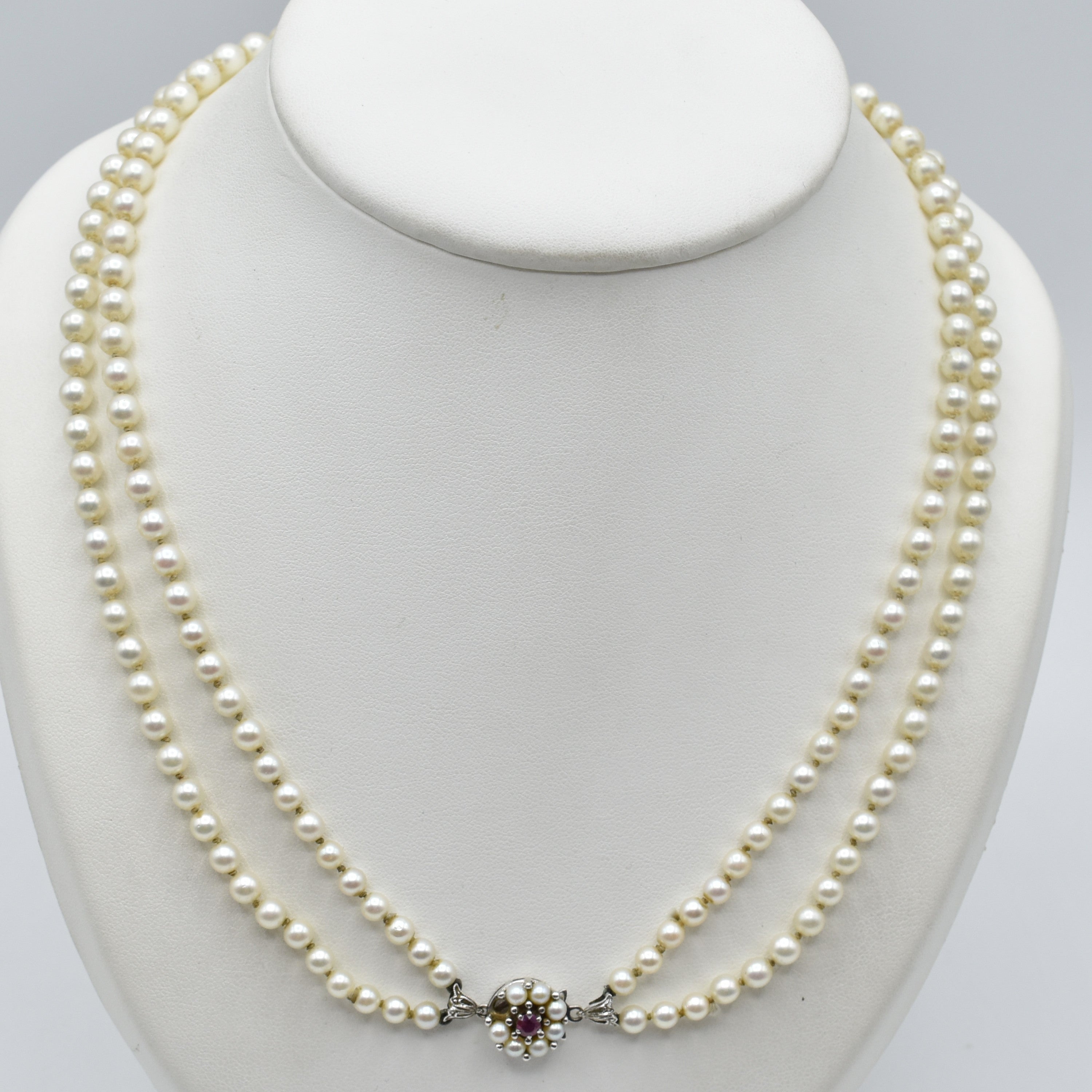 Collier de perles à 2 rangs en chute (4 à 8 mm) avec fermoir en or blanc 18 ct (pierre de couleur, perle, perle manque) (51 cm)
