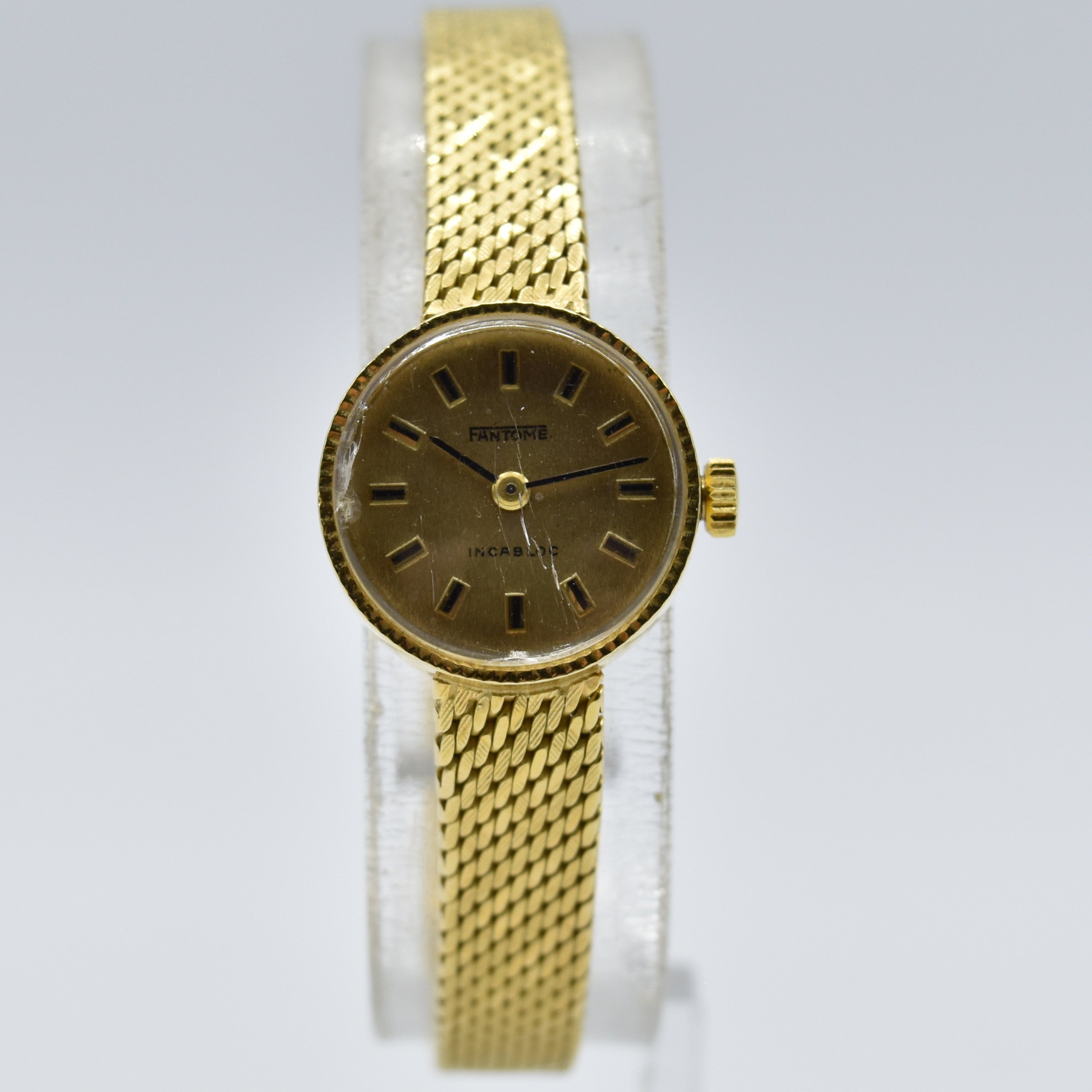 Bracelet-montre dame en or jaune 18 ct FANTOME mécanique (verre abîmé) - 26.8 g brut (16.5 à 17 cm)