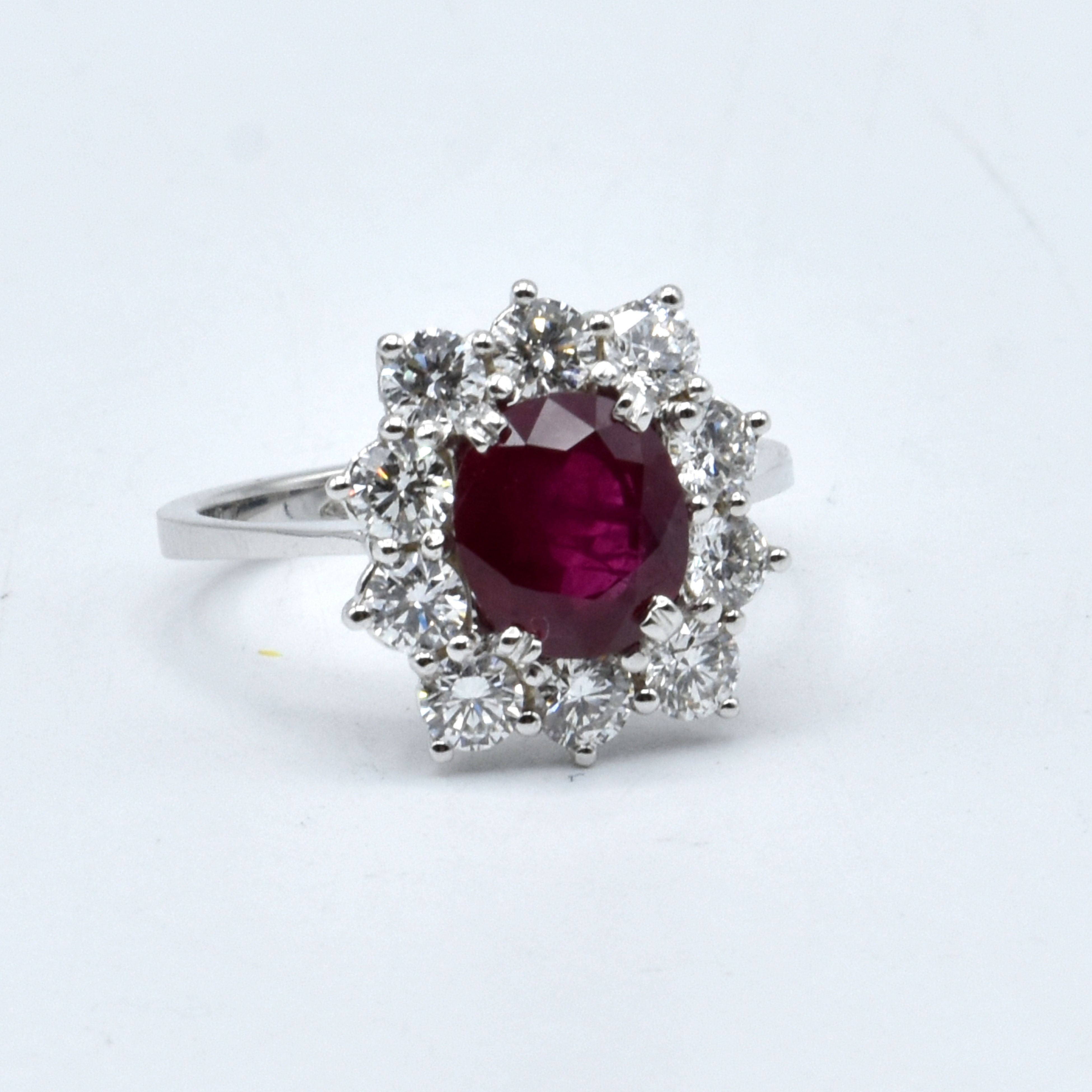 Bague en or blanc 18 ct sertie de 10 brillants +/- 1.50 ct et 1 rubis - 4.8 g (Taille: 57)