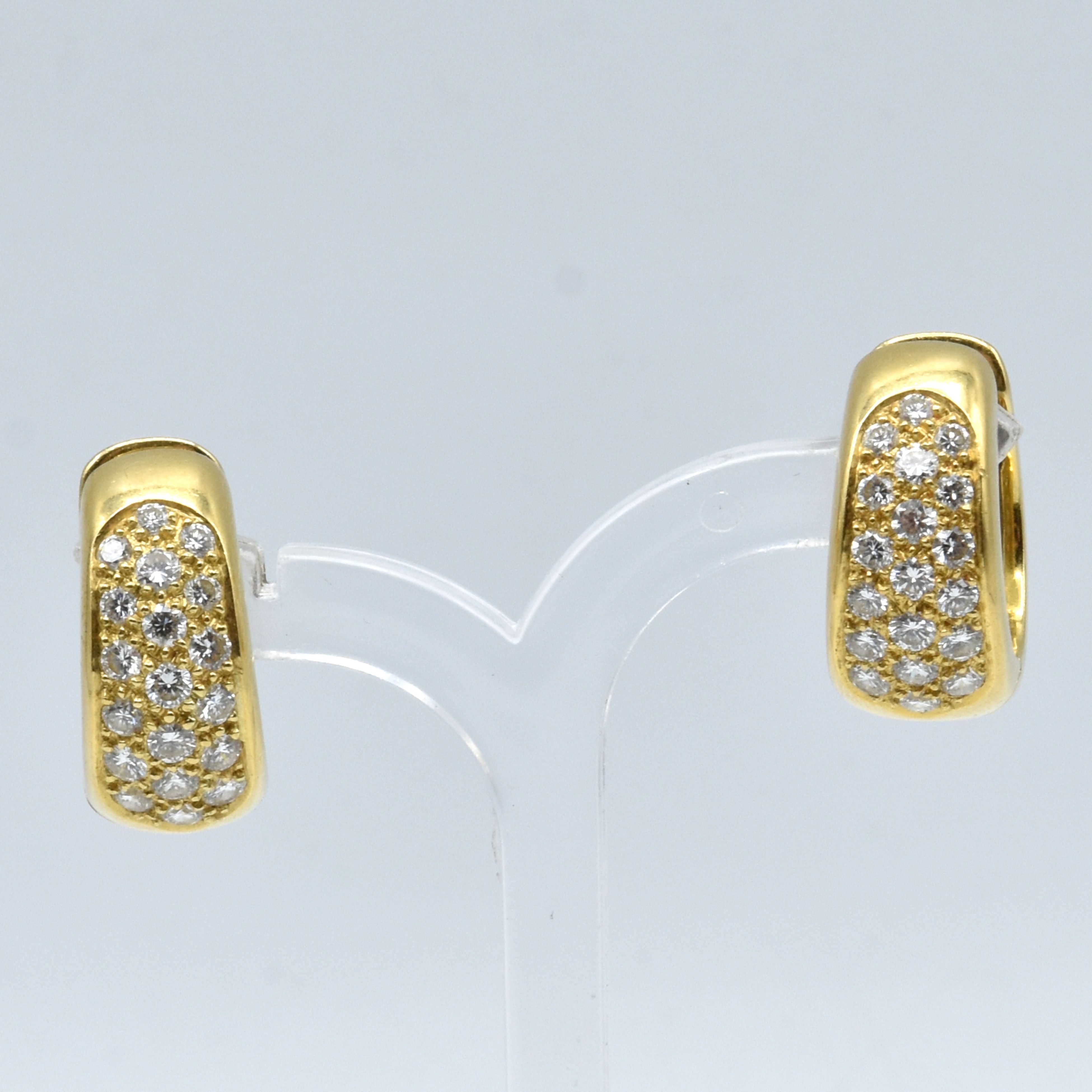 2 boucles d'oreilles en or jaune 18 ct serties de 38 brillants +/- 1.40 ct - 13.8 g