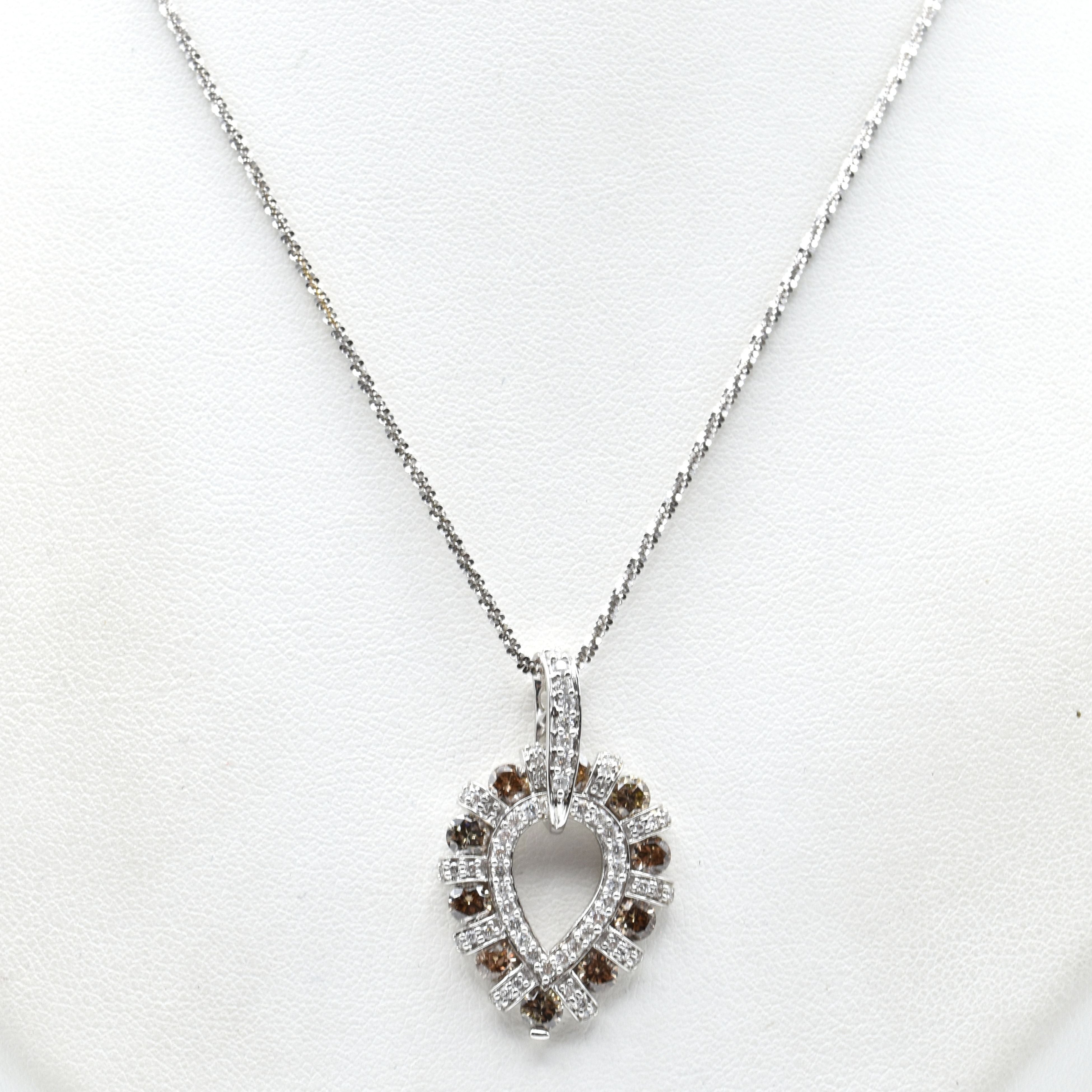 Collier et pendentif en or blanc 18 ct serti de 72 brillants mélange de couleurs +/- 2 ct au total - 9.1 g brut + certificat AIG n° J3230091220 + boîte