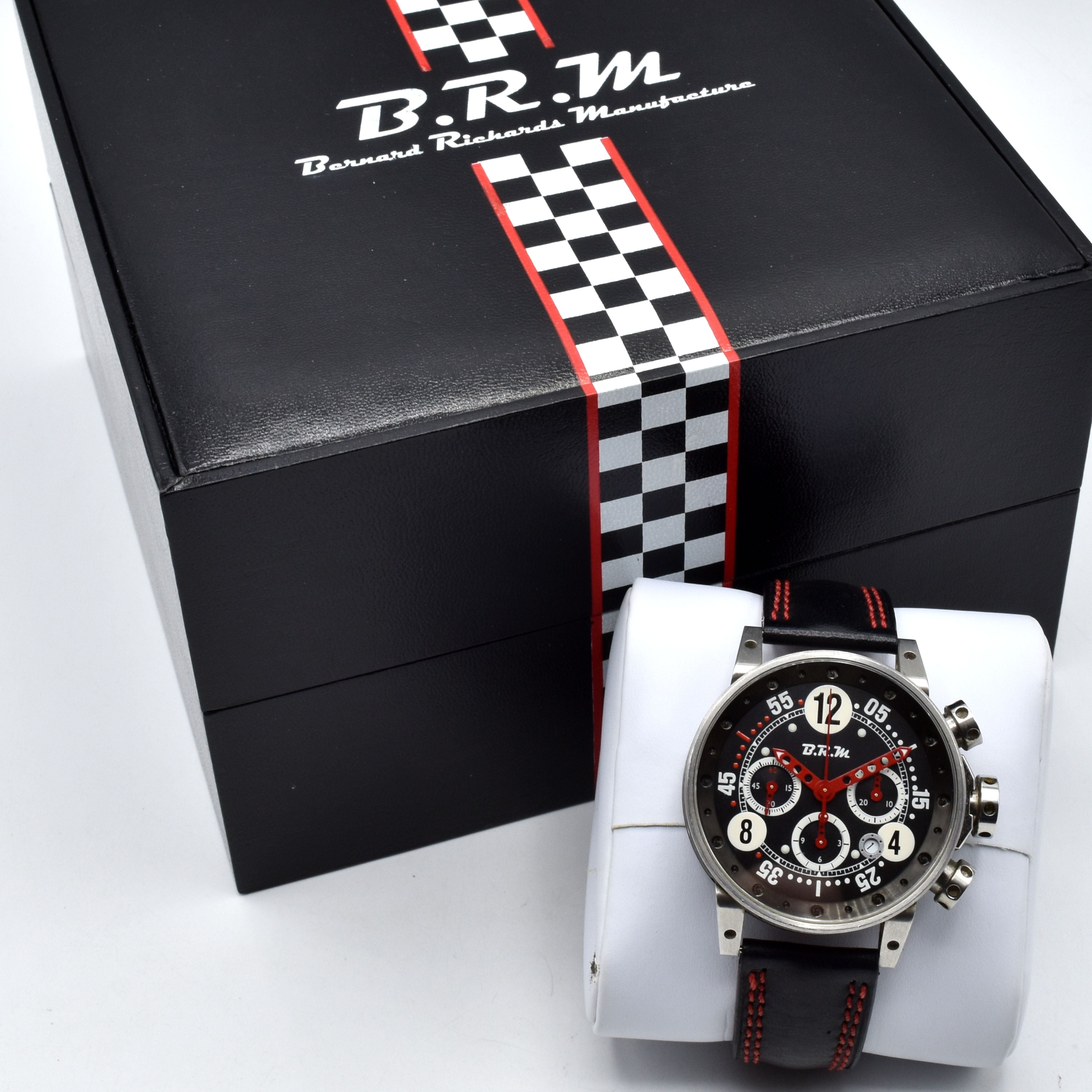 Bracelet-montre homme en acier BRM V1244 Red Edition 2012 automatique (bracelet en cuir avec boucle en acier, abîmé, montre n° 0028J5) + accessoire + boîte d'origine