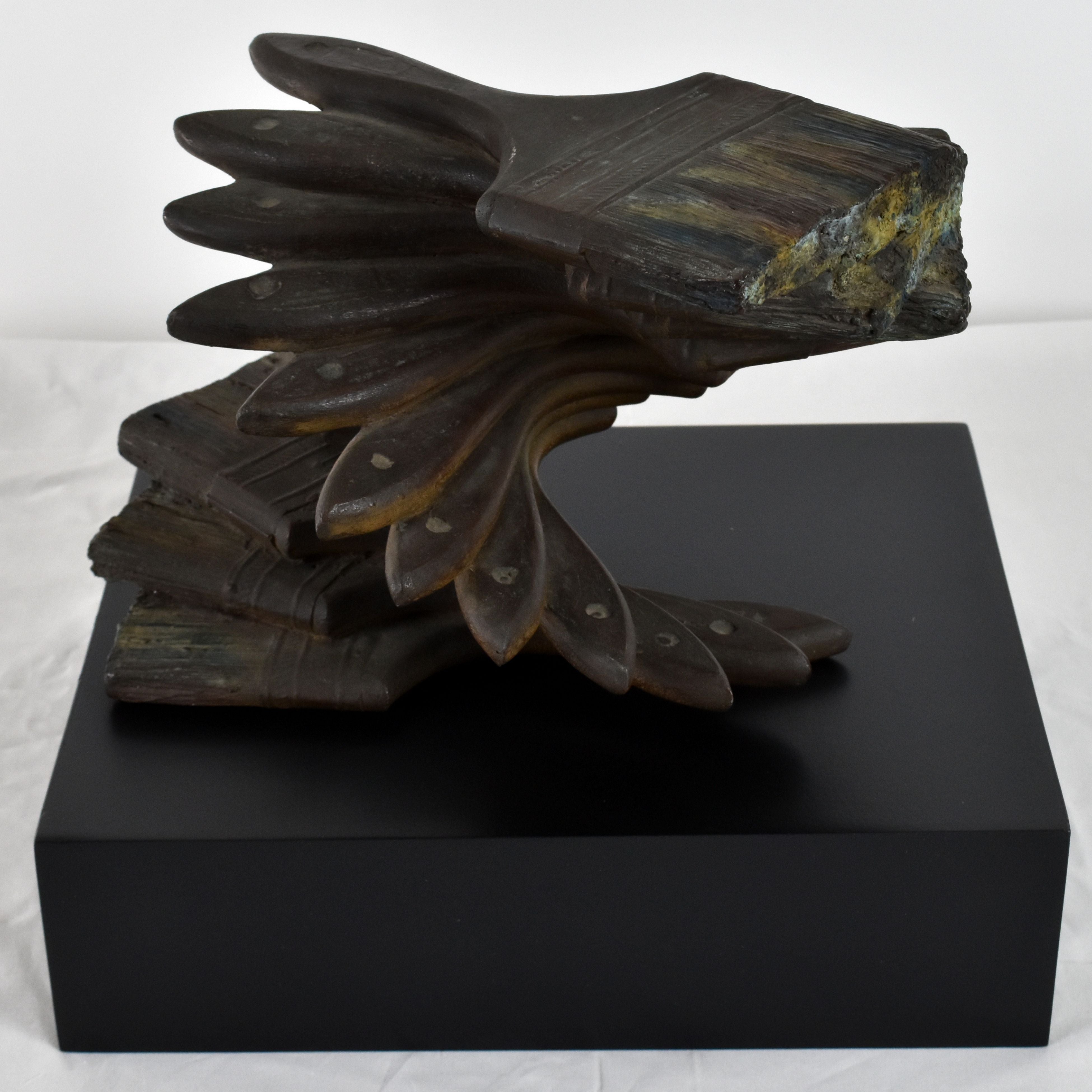 Sculpture en bronze signée ARMAN sur socle en bois et portant une patine colorée: Les pinceaux (26 x 30 x 28 cm)