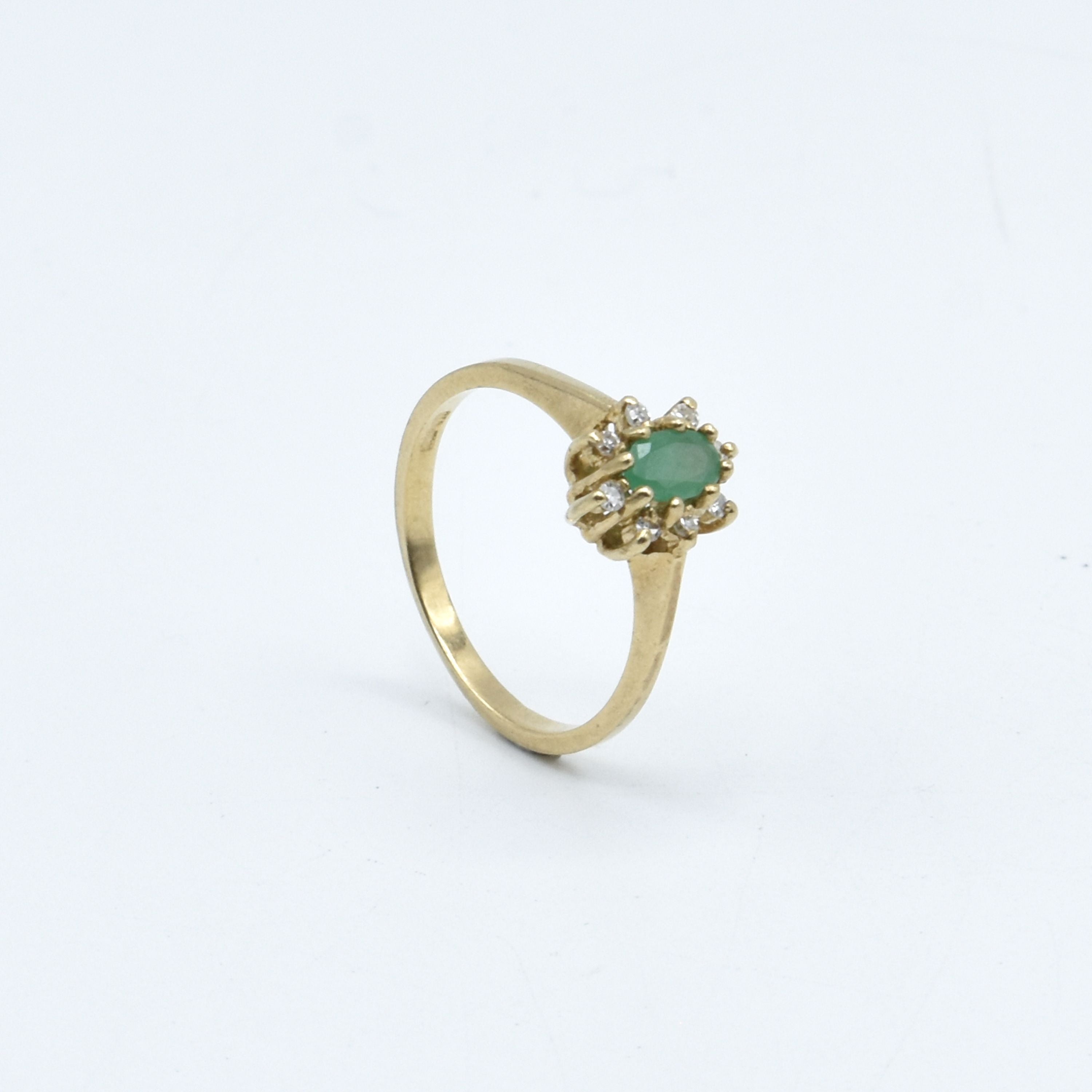 Bague en or jaune 10 ct sertie de 8 diamants taille 8/8 +/- 0.08 ct (pierre de couleur) - 1.8 g (Taille: 51)