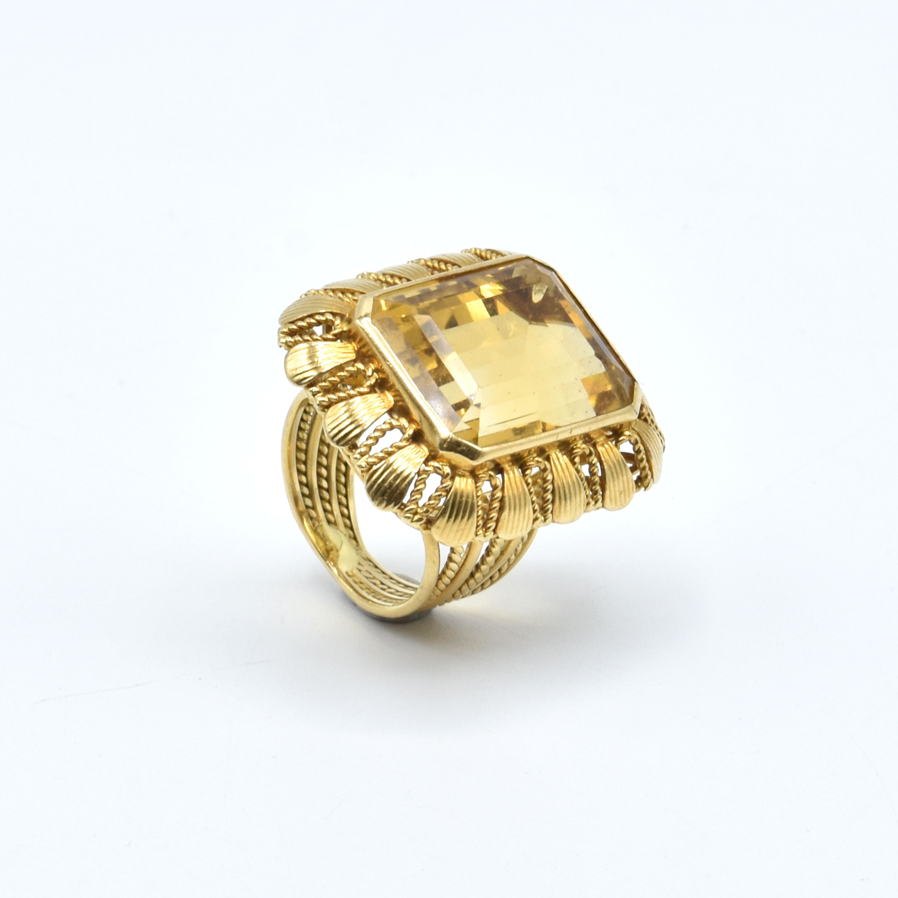 Bague en or jaune 18 ct sertie d'1 citrine - 14.5 g brut (Taille: 48)