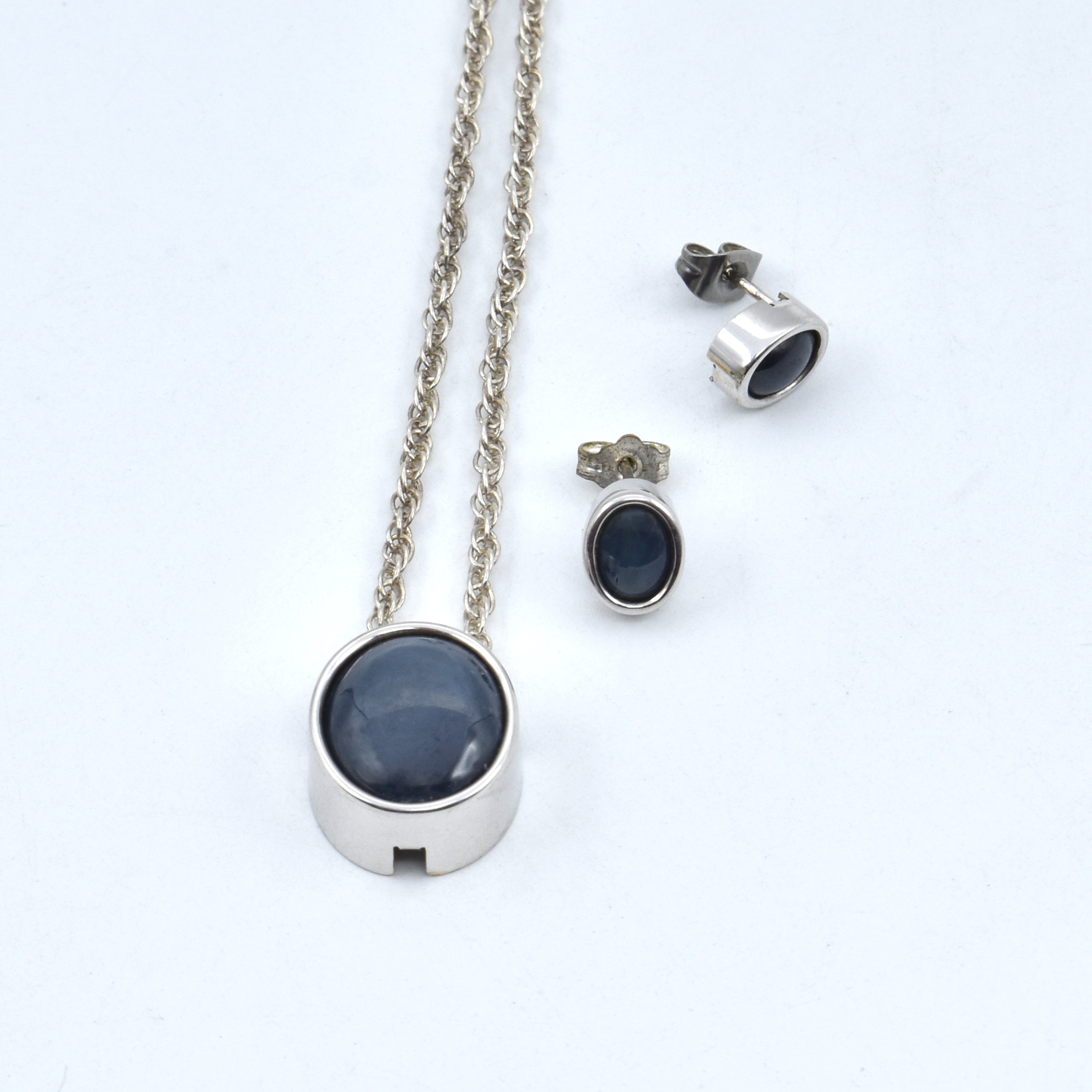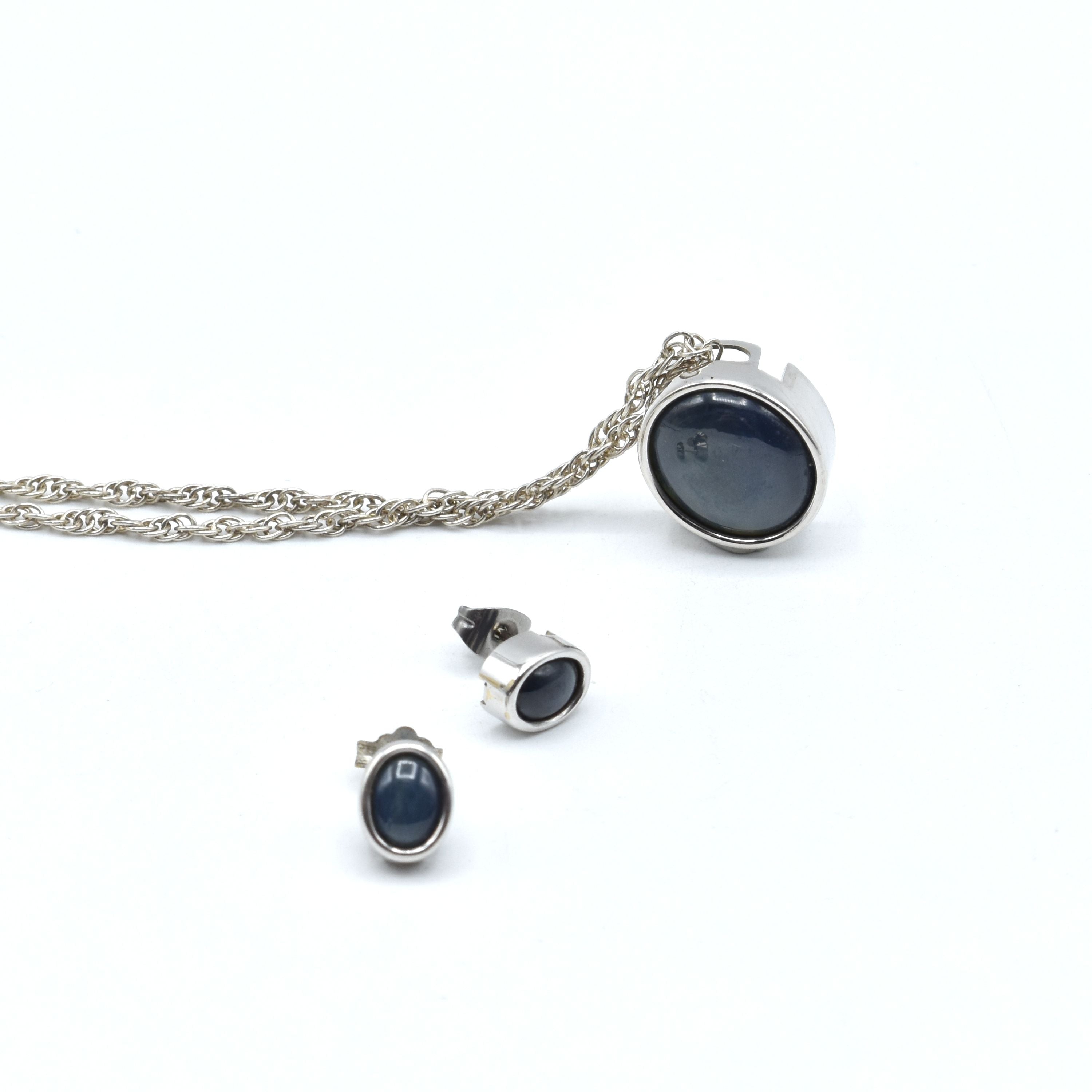 Collier en argent 925/1000 (bosselé) - 4 g (45 cm) Pendentif et 2 boucles d'oreilles en or blanc 18 ct (pierres de couleur, poussettes en métal) - 7.7 g brut