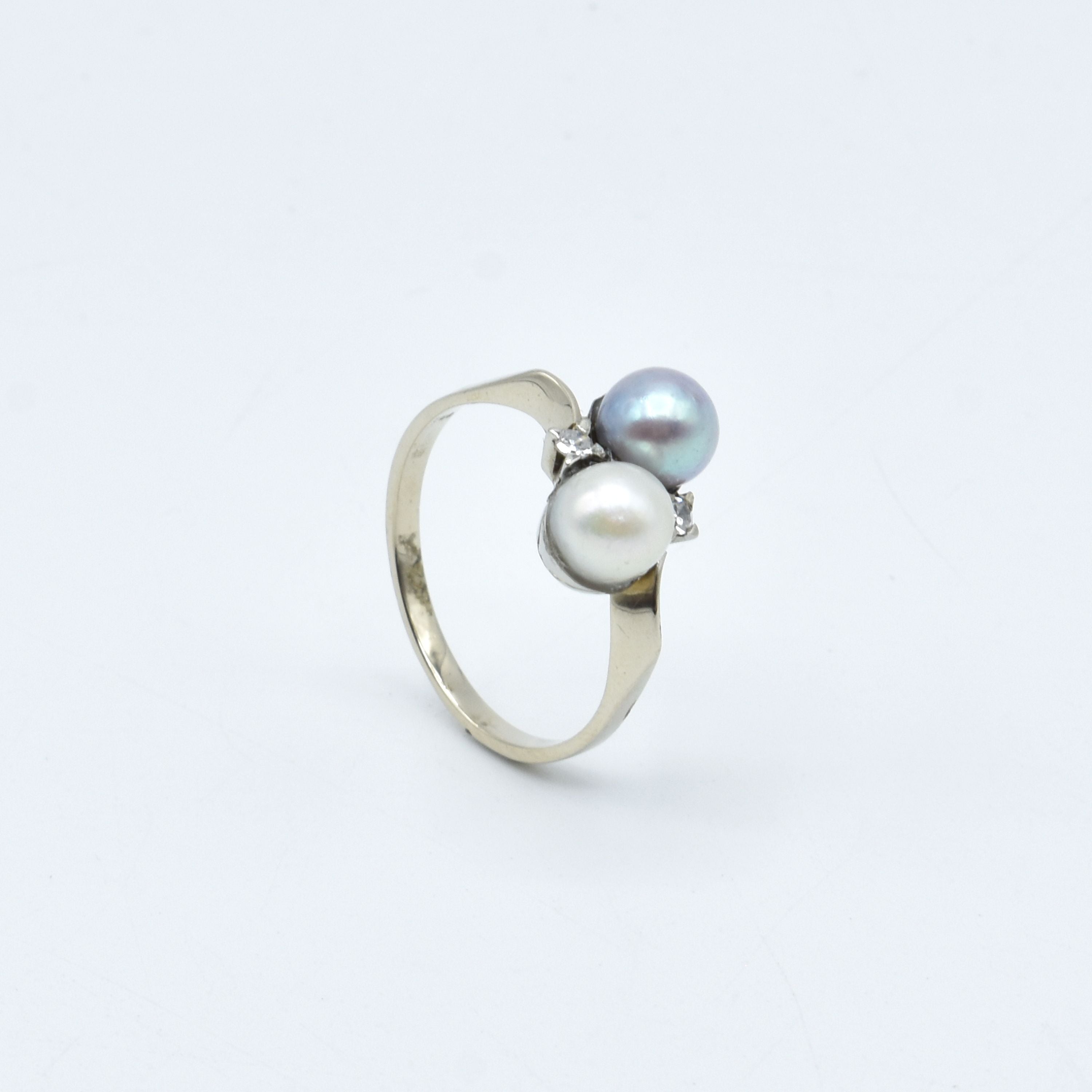 Bague en or blanc 18 ct sertie de 2 diamants taille 8/8 +/- 0.06 ct et 2 perles de culture - 3.9 g brut (Taille: 59)