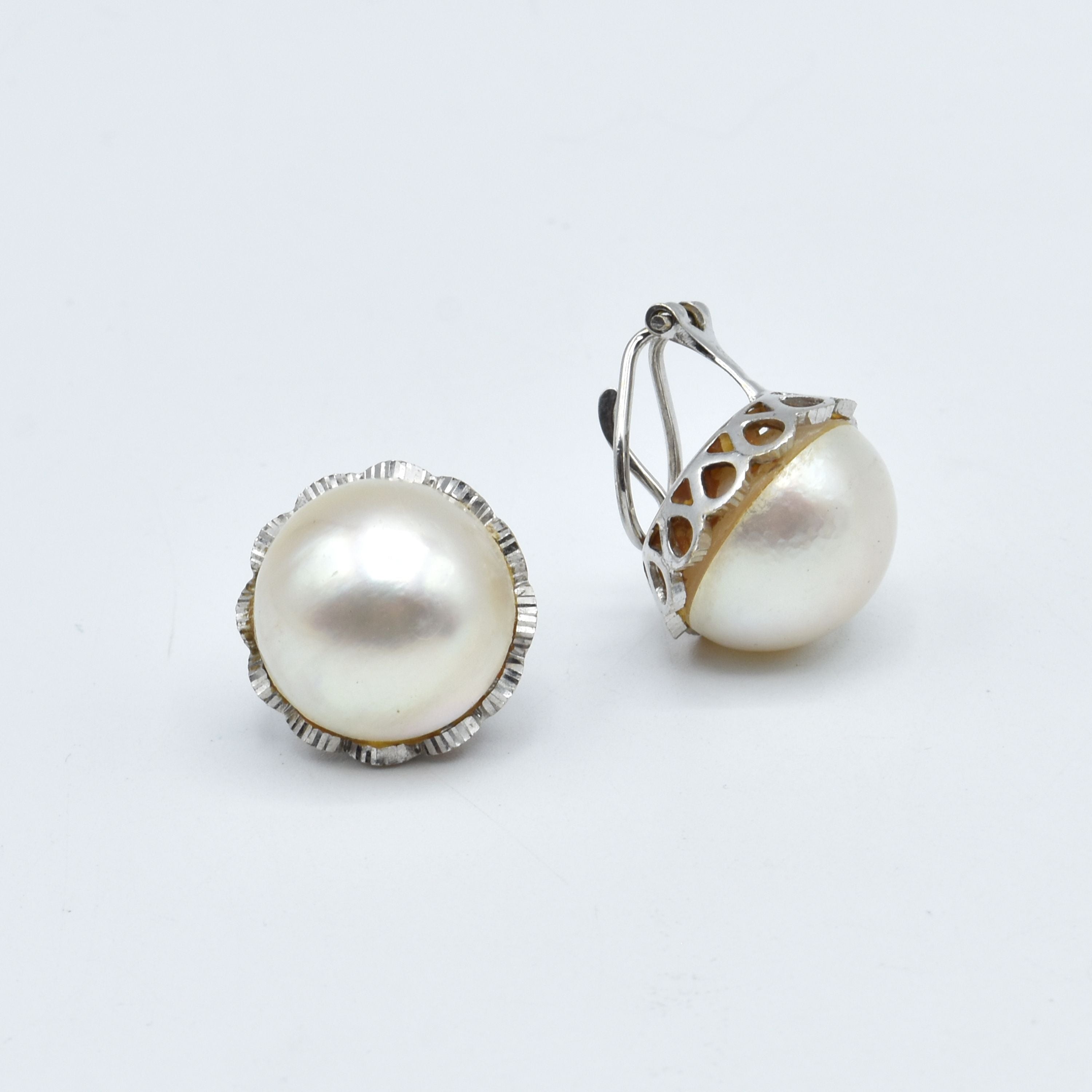 2 boucles d'oreilles en or blanc 18 ct serties de perles mabé - 11.6 g brut