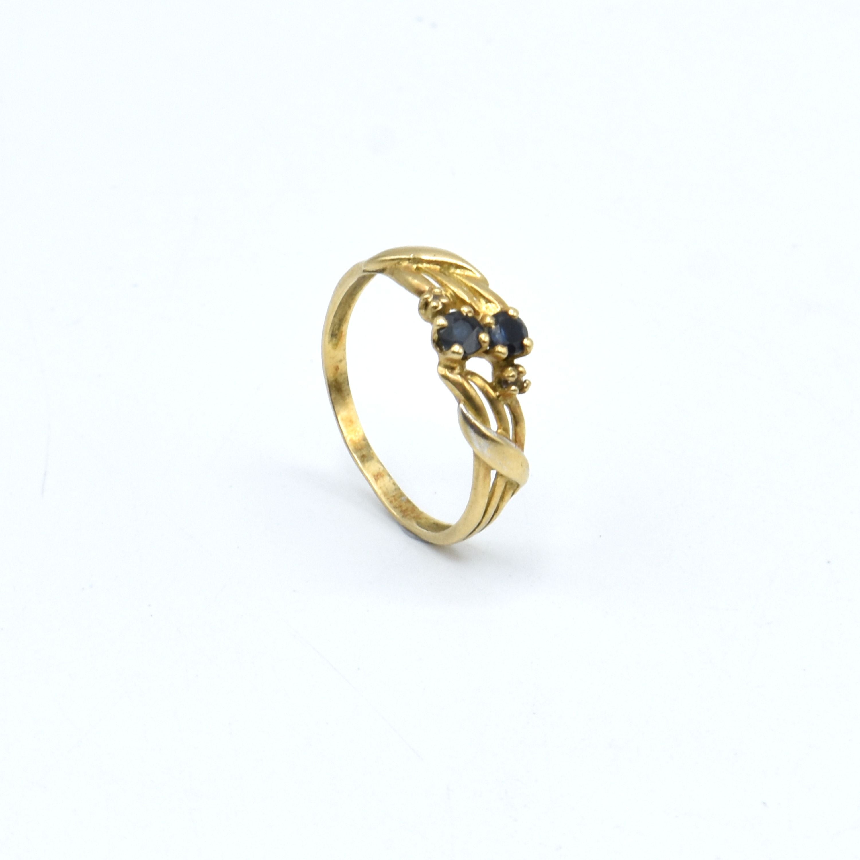Bague en or jaune 18 ct sertie de 2 diamants taille 8/8 +/- 0.02 ct(pierres de couleur, bosselée) - 1.8 g brut (Taille: 52)