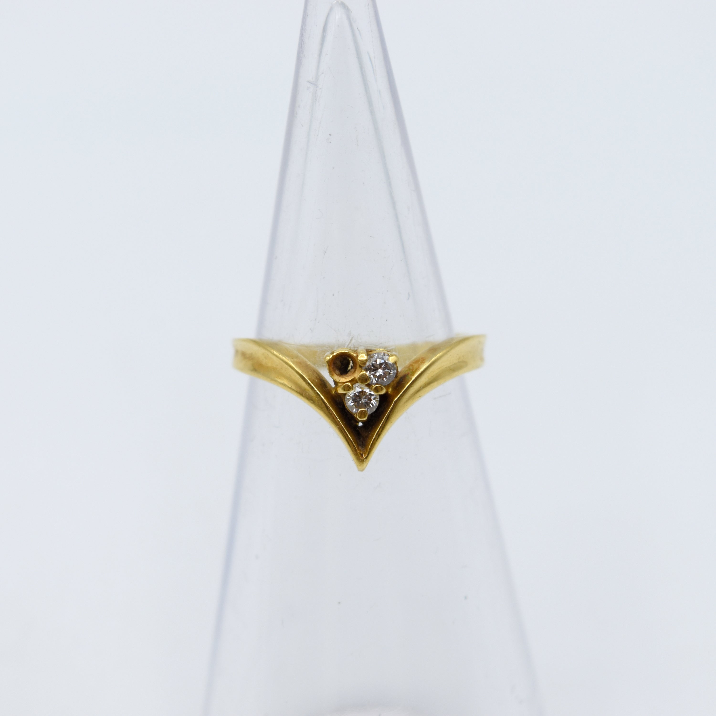 Bague en or jaune 18 ct sertie de 2 brillants +/- 0.10 ct (pierre manque, abîmée) - 3.4 g (Taille: 52)