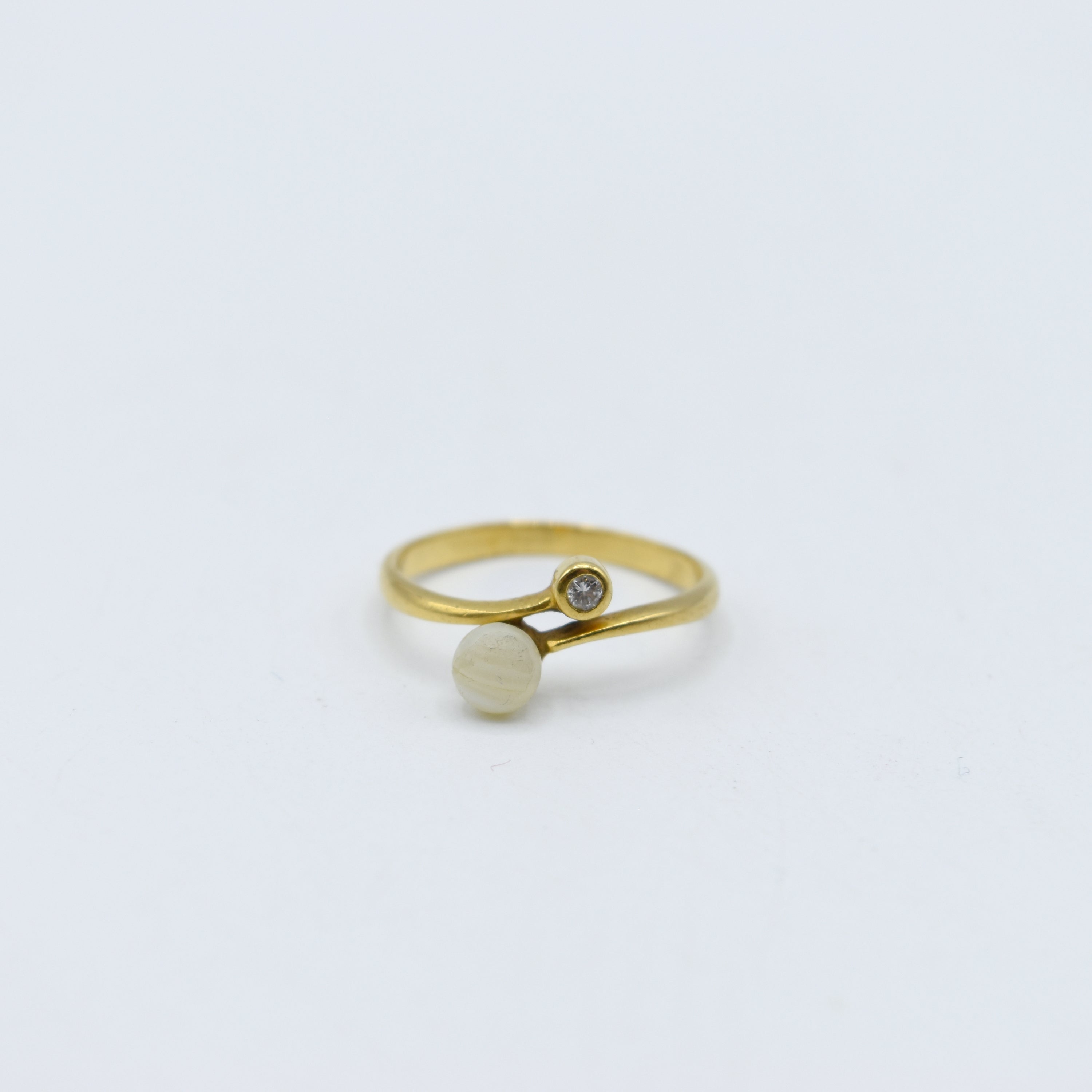 Bague en or jaune 18 ct sertie d'1 brillant +/- 0.05 ct (perle, perle abîmée, abîmée) - 2 g brut (Taille: 52)