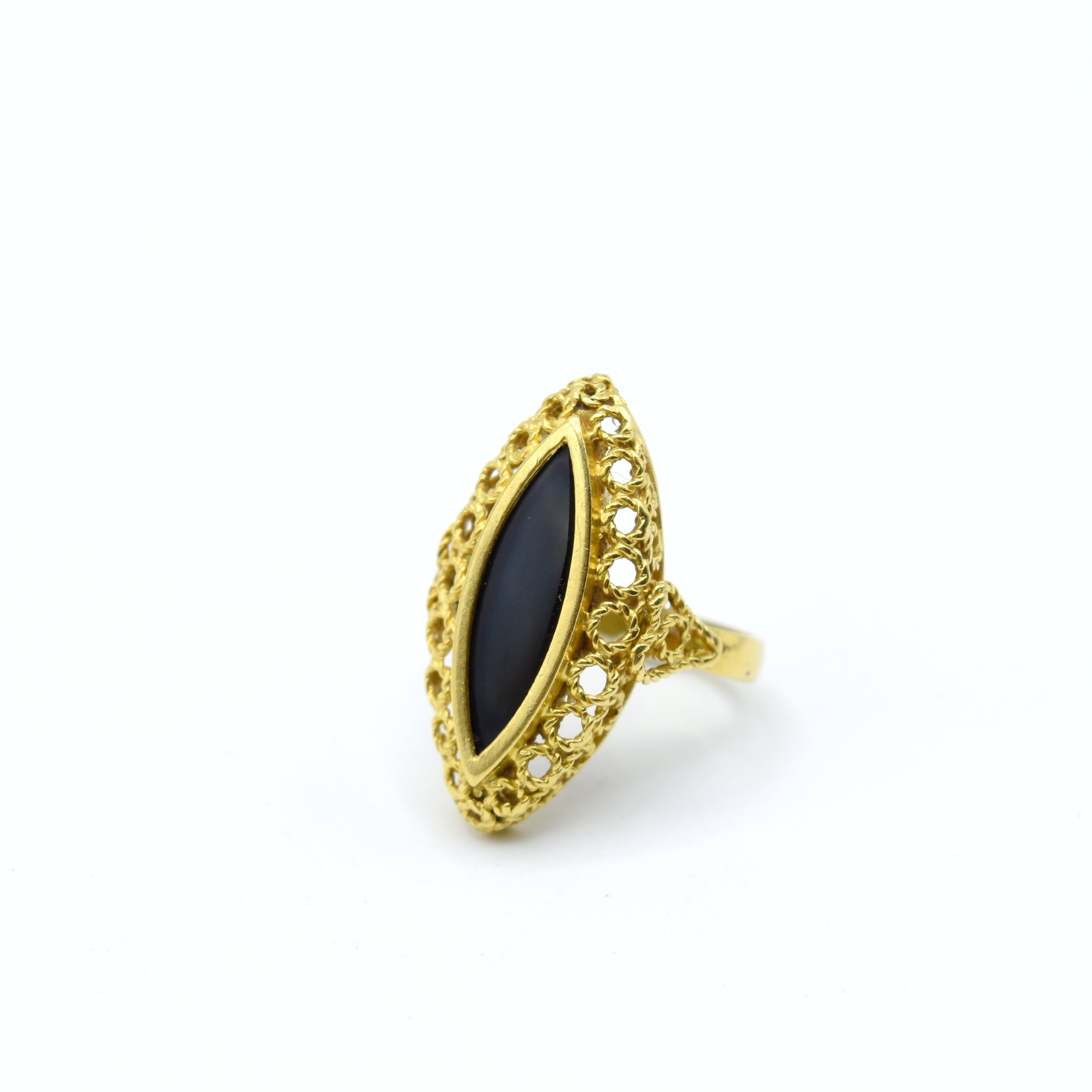 Bague en or jaune 18 ct (pierre de couleur) - 6 g brut (Taille: 54)