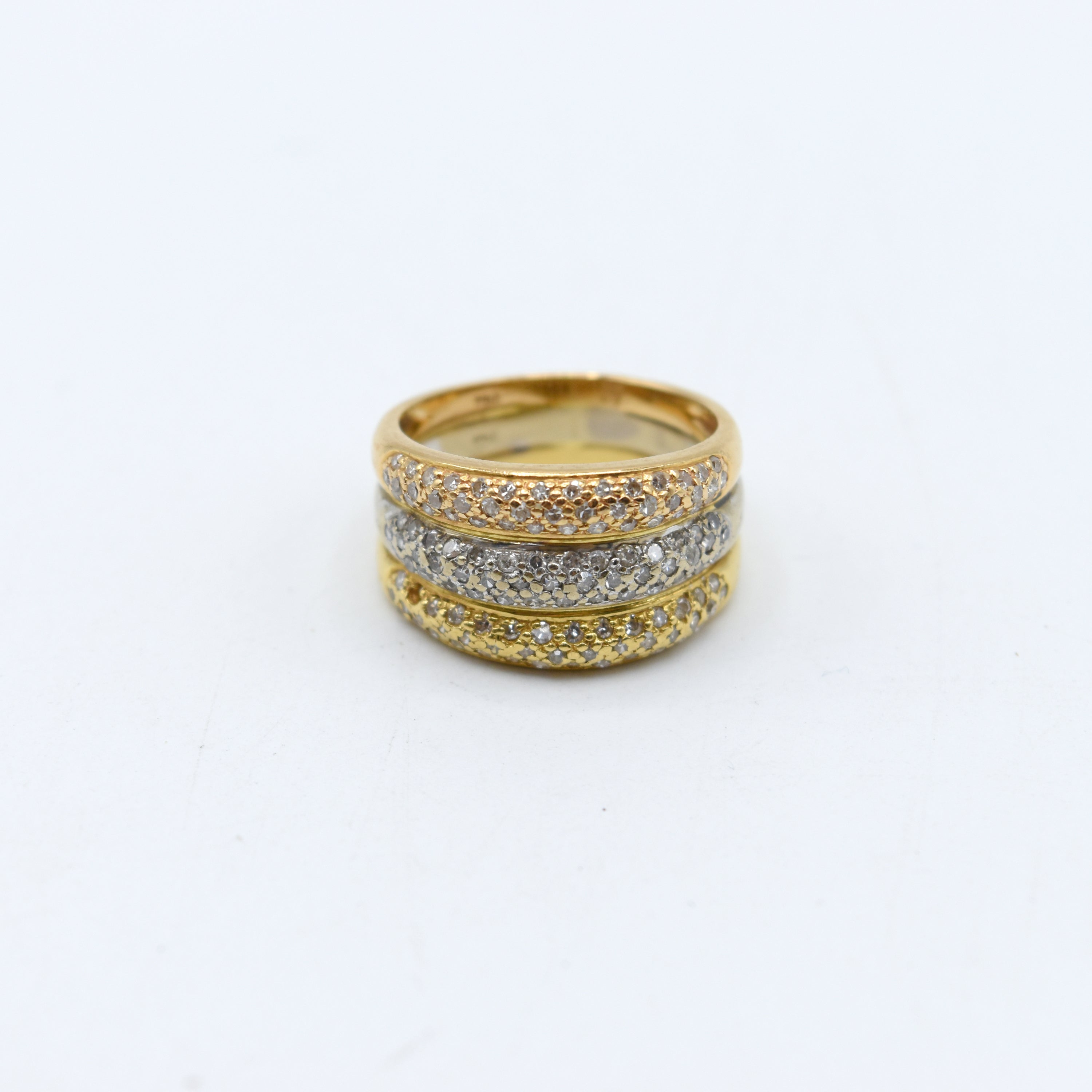Bague en or 3 couleurs 18 ct sertie de 128 diamants taille 8/8 +/- 0.70 ct (pierre manque, légèrement abîmée) - 6.6 g (Taille: 51.5)