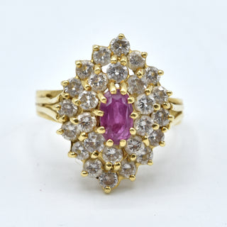 Bague en or jaune 18 ct sertie de 26 brillants +/- 1.30 ct (pierre de couleur) - 6.4 g brut (Taille: 55)