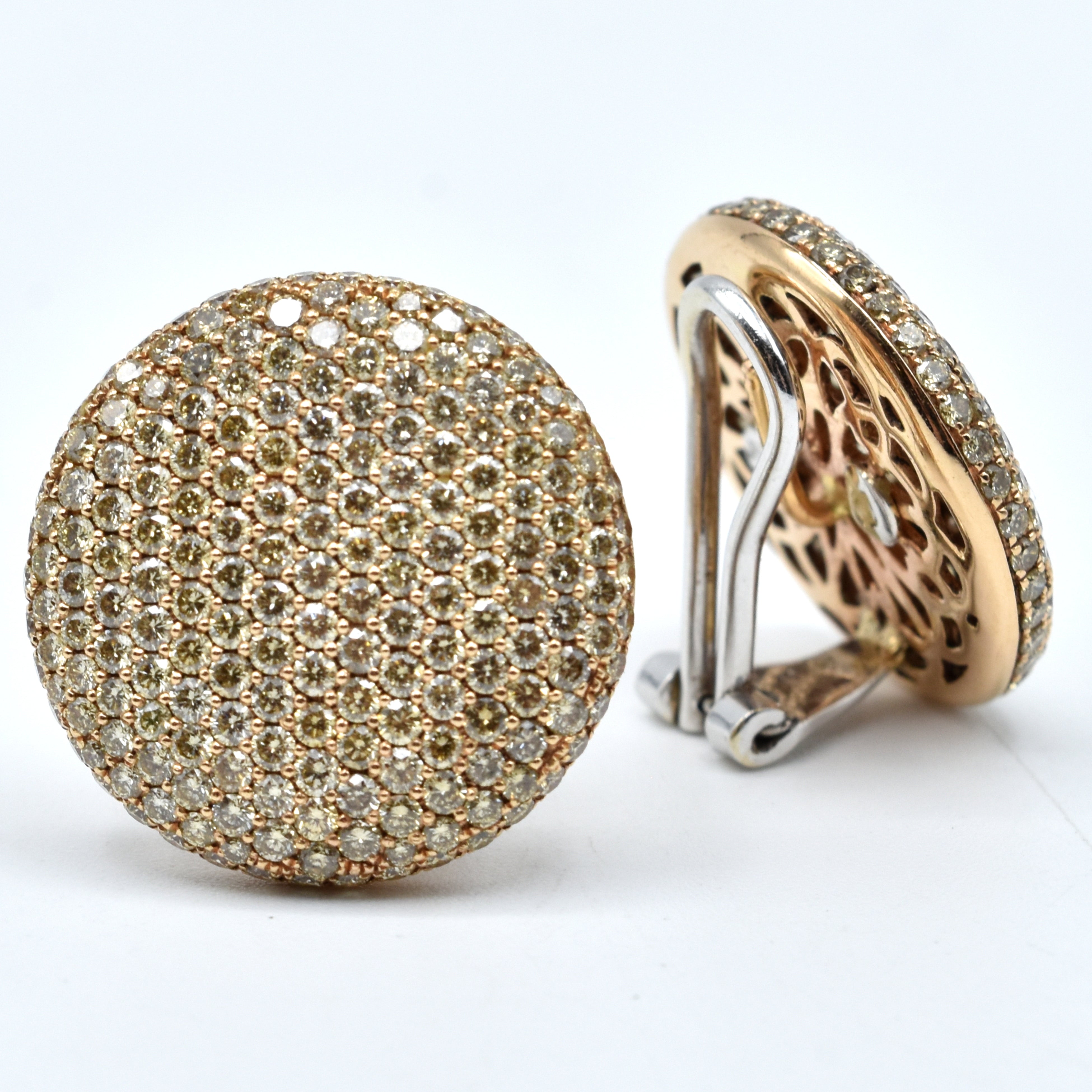 2 boucles d'oreilles en or rose et blanc 18 ct serties de 372 brillants +/- 4.50 ct (tiges bosselées) - 9.7 g