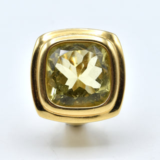 Bague en or jaune 18 ct sertie d'1 prasiolite - 15.1 g brut (Taille: 56)
