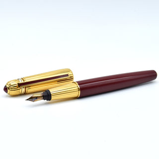 Porte-plume en plaqué or et émail avec plume en or jaune 18 ct Pasha de CARTIER Trinity (numéroté 1987 5948, pierre de couleur, cartouche manque, plume abîmée, légèrement griffé)