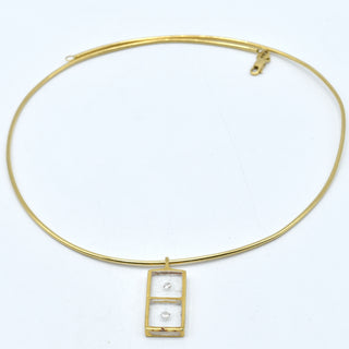 Collier (cable) et pendentif en or jaune 18 ct (pierres fausses, partie en plexi, plexi abîmé et bosselé, abîmé, bosselé) - 10.9 g brut (42 cm)