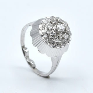 Bague en or blanc 18 ct sertie de 24 diamants taille 8/8 +/- 0.45 ct et 1 brillant +/- 0.10 ct (ressort) - 6.4 g (Taille: +/- 61)