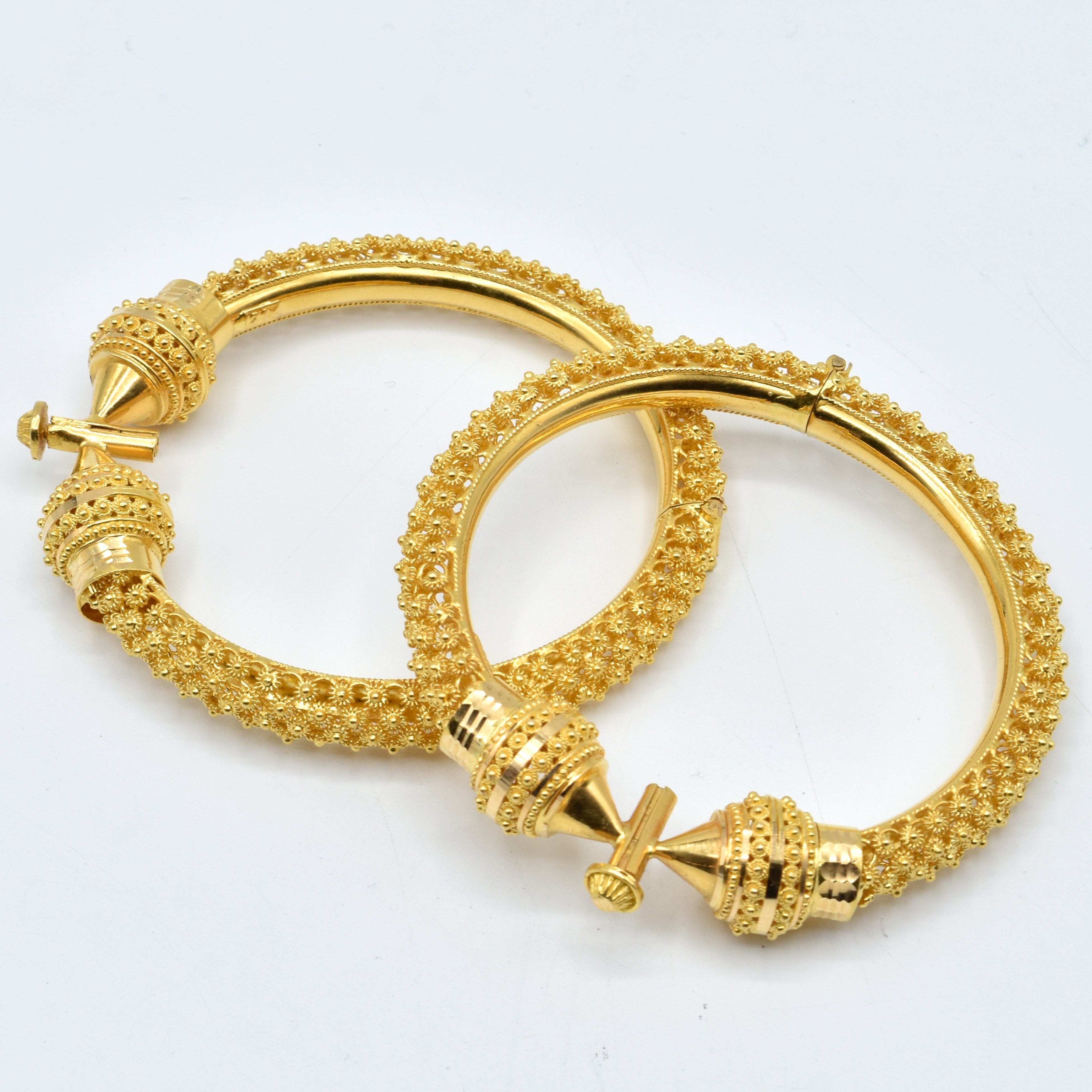 2 bracelets rigides en or jaune 18 ct - 78.6 g (Diam: 5.8 cm x 2)