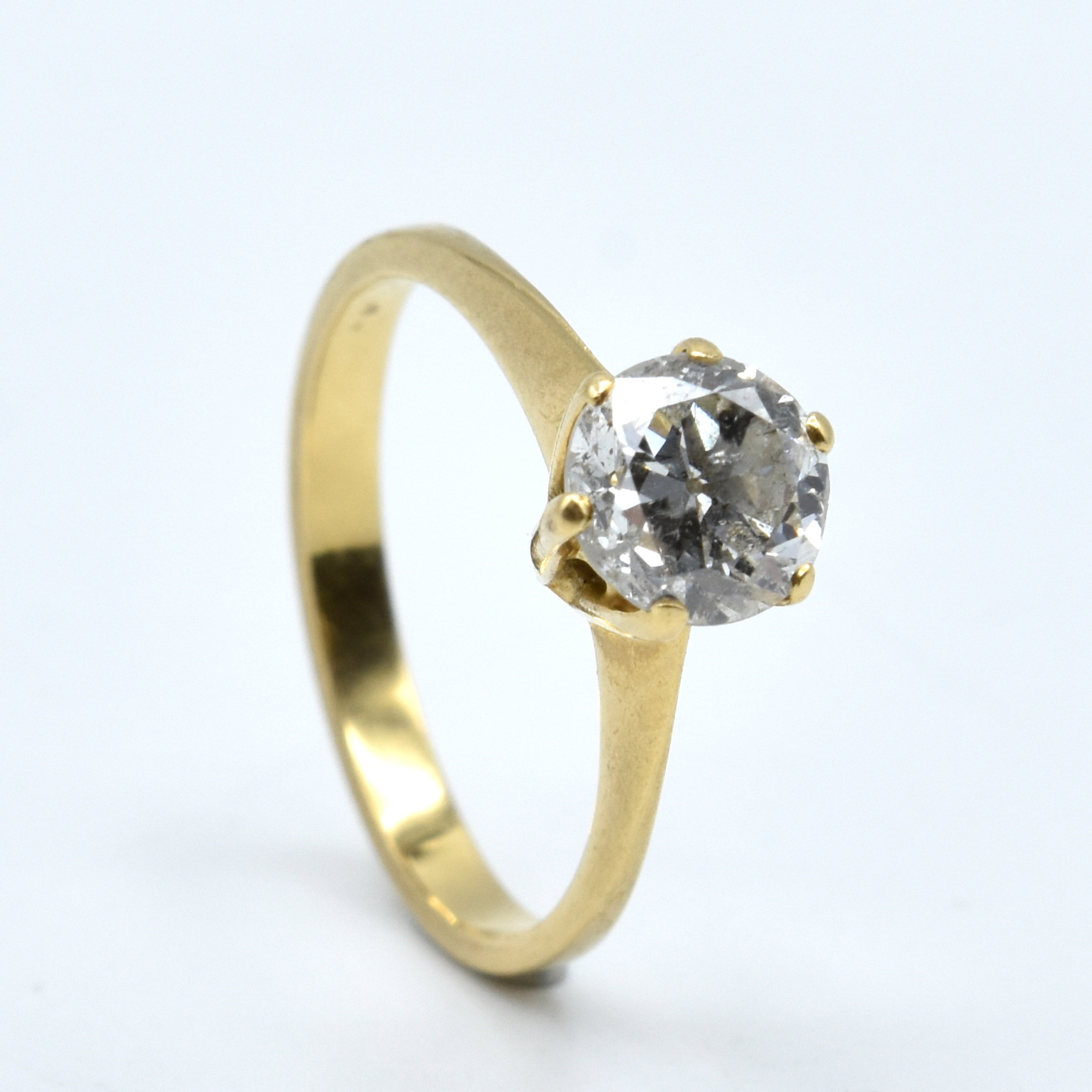 Bague en or jaune 18 ct sertie d'1 brillant +/- 1 ct - 3 g brut (Taille: 50.5)
