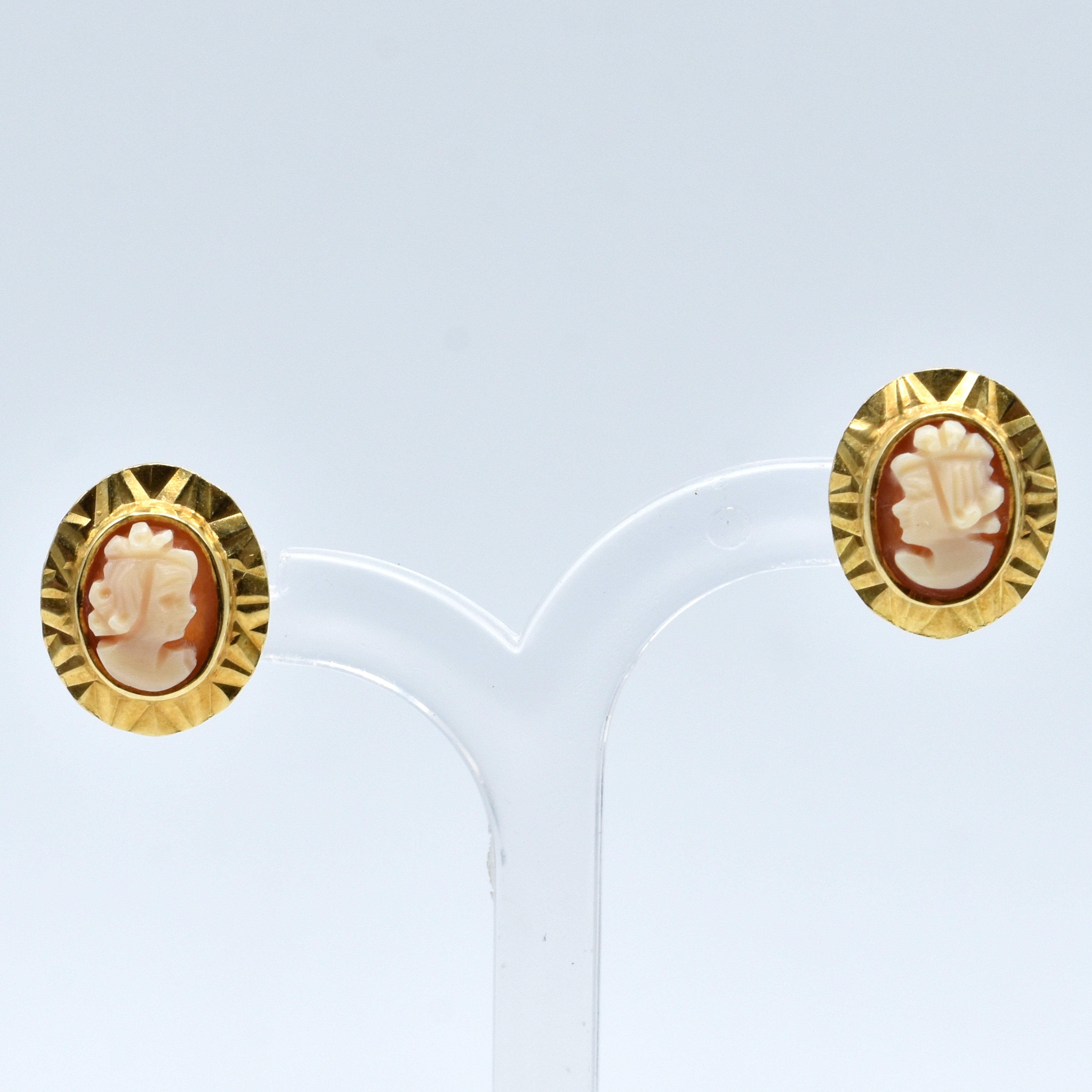 2 boucles d'oreilles en or jaune 18 ct serties de 2 camées - 3.2 g brut