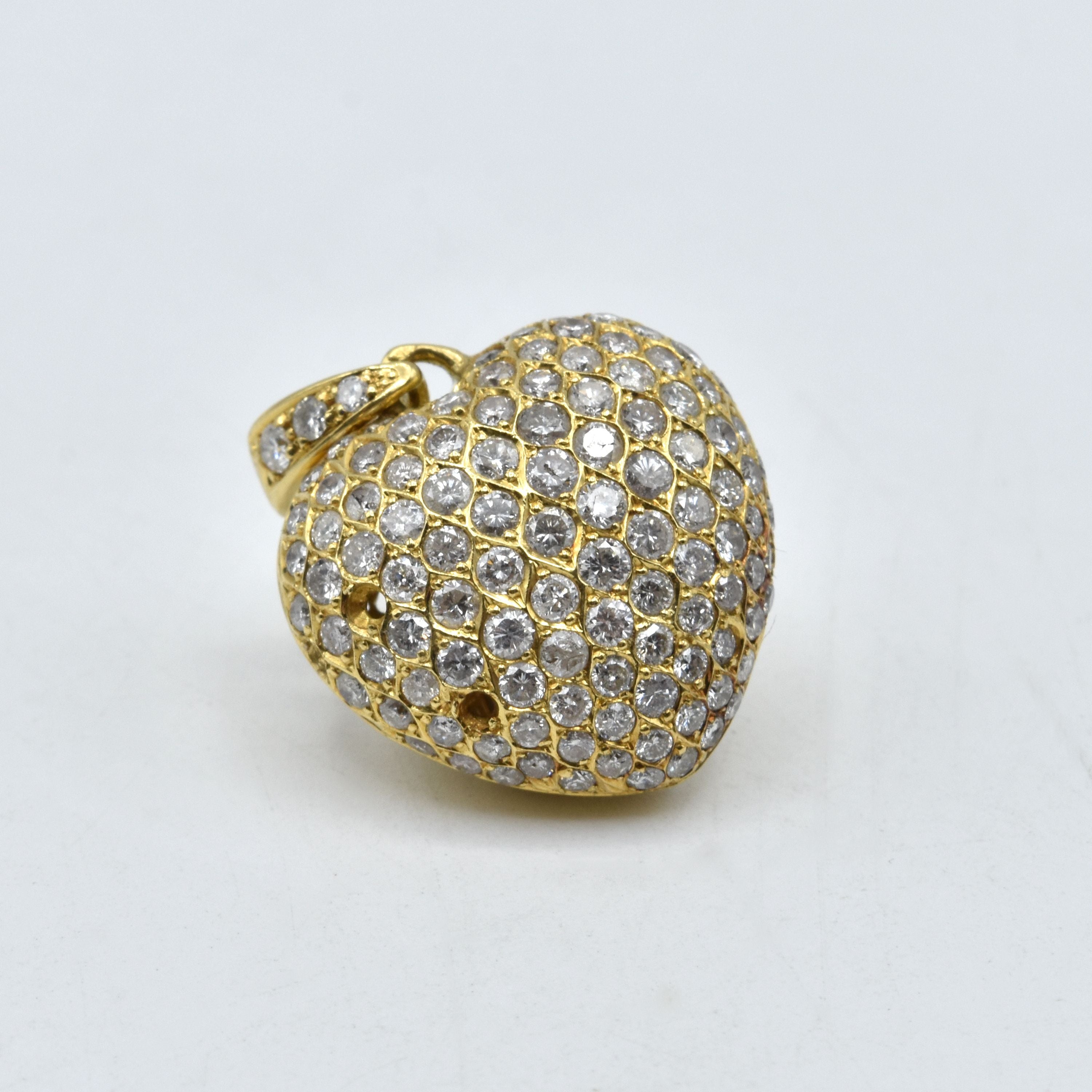 Pendentif (coeur) en or jaune 18 ct serti de 111 brillants +/- 3 ct (3 pierres manquent, griffé) - 9.5 g brut