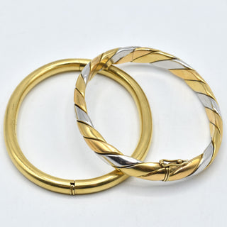 2 bracelets rigides en or 3 couleurs 18 ct (bosselé) - 52.4 g (5.8 x 4.7 & 6 x 4.9 cm)