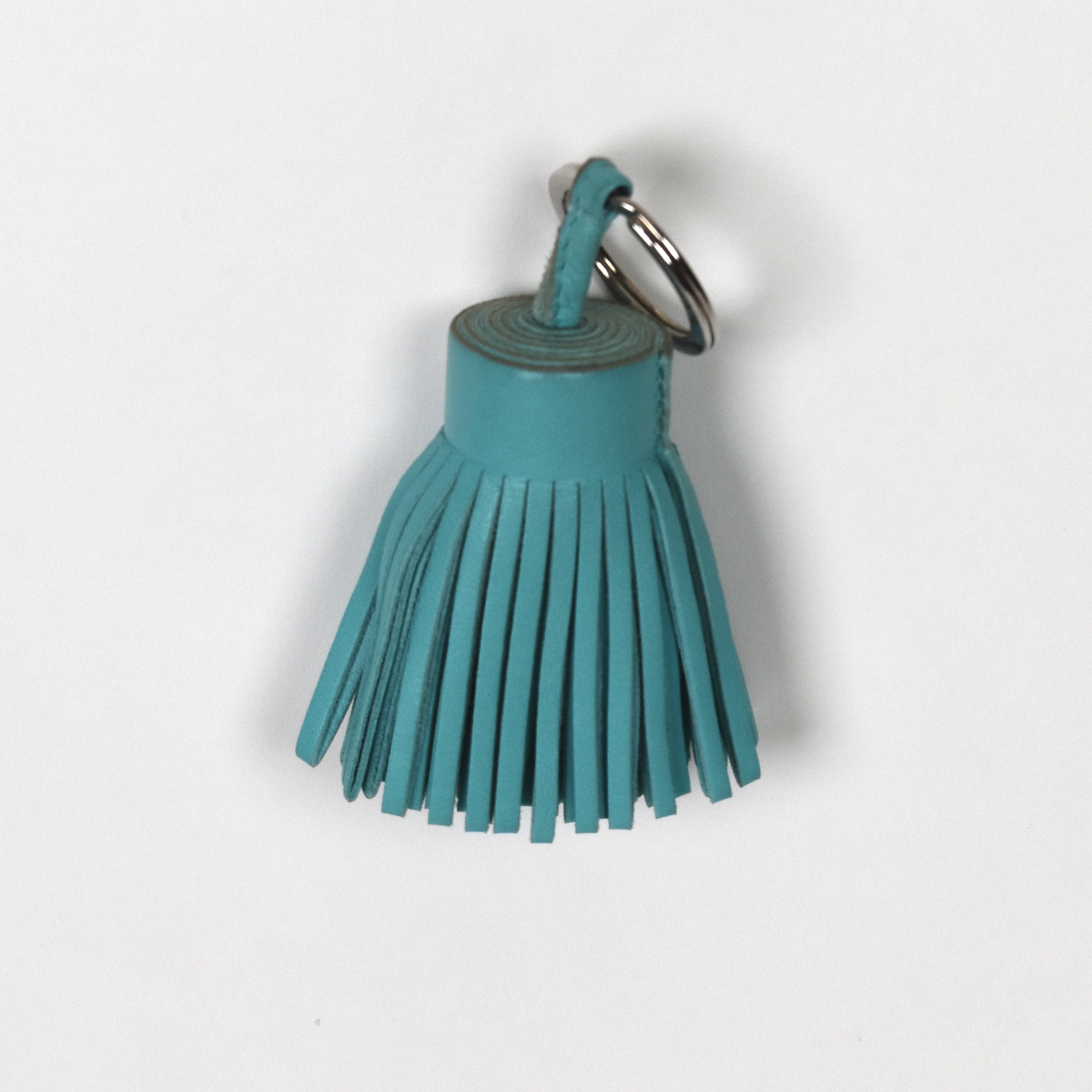 Porte-clef en cuir turquoise HERMES (H: 11.5 cm) + boîte