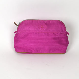 Pochette en tissus fushia HERMES (25 x 9 x 16 cm) (trace de stylo au dos) + boîte (abîmée)