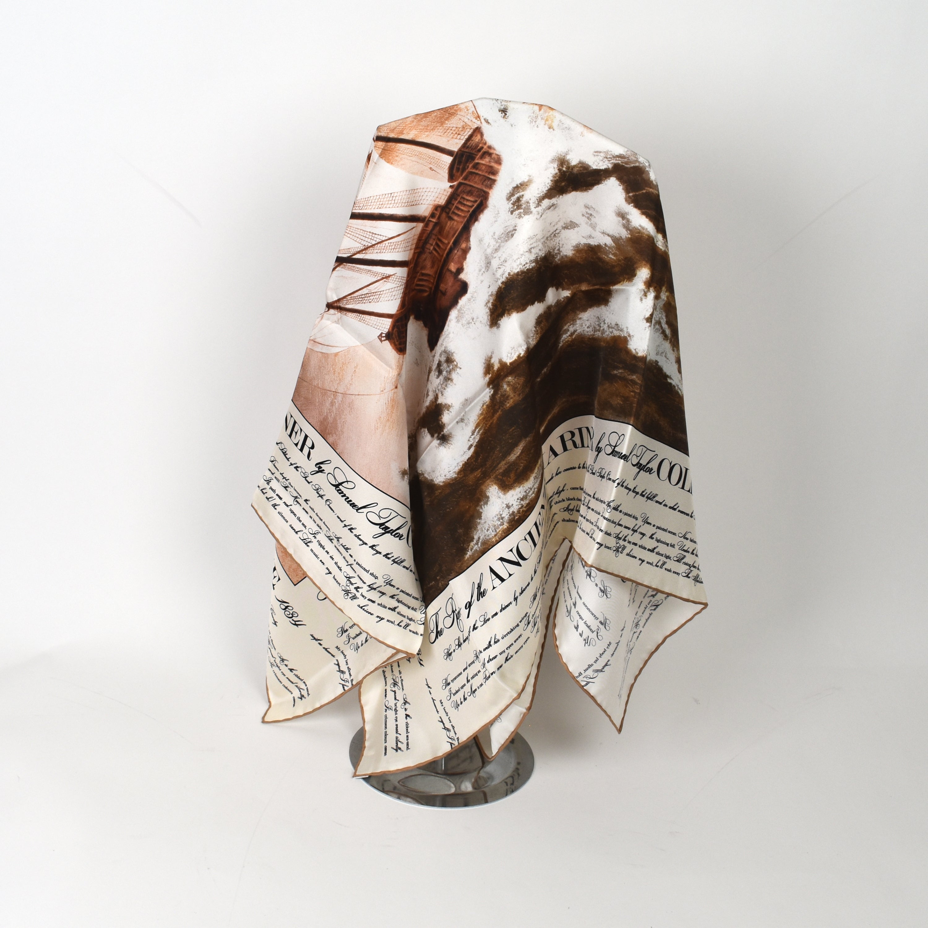 Carré en soie signé BURBERRY: "The rime of the ancient mariner" (90 x 90 cm) + housse en plastique