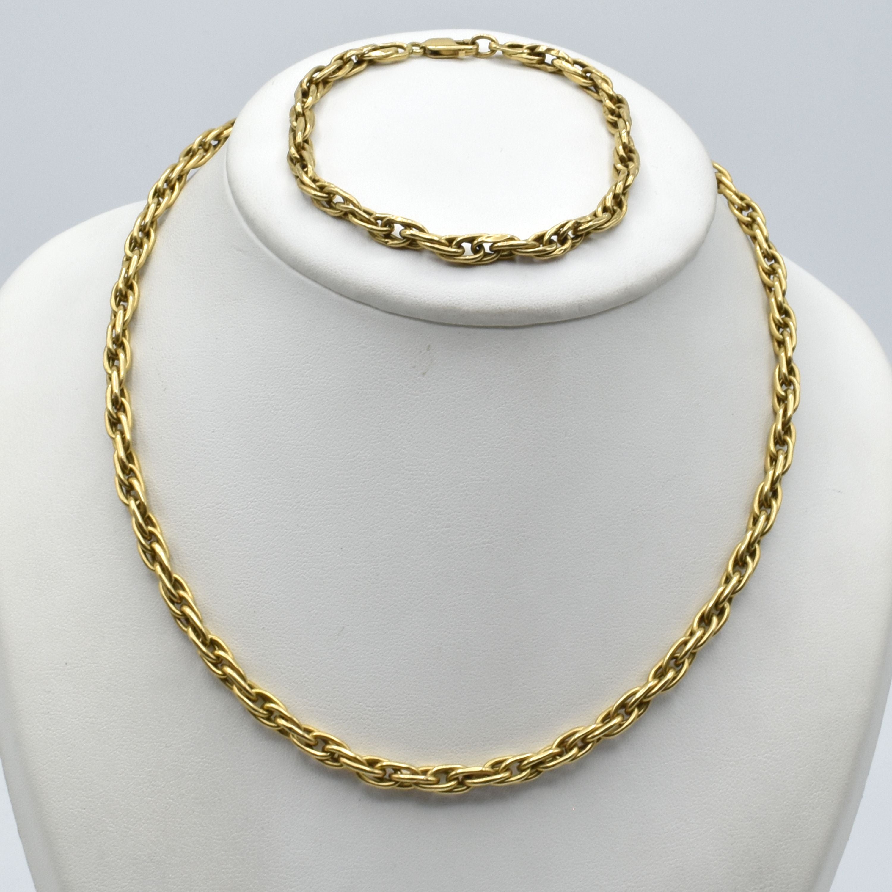 Collier et bracelet en or jaune 18 ct (abîmé, bosselés) - 18.6 g (43.5 & 20 cm)
