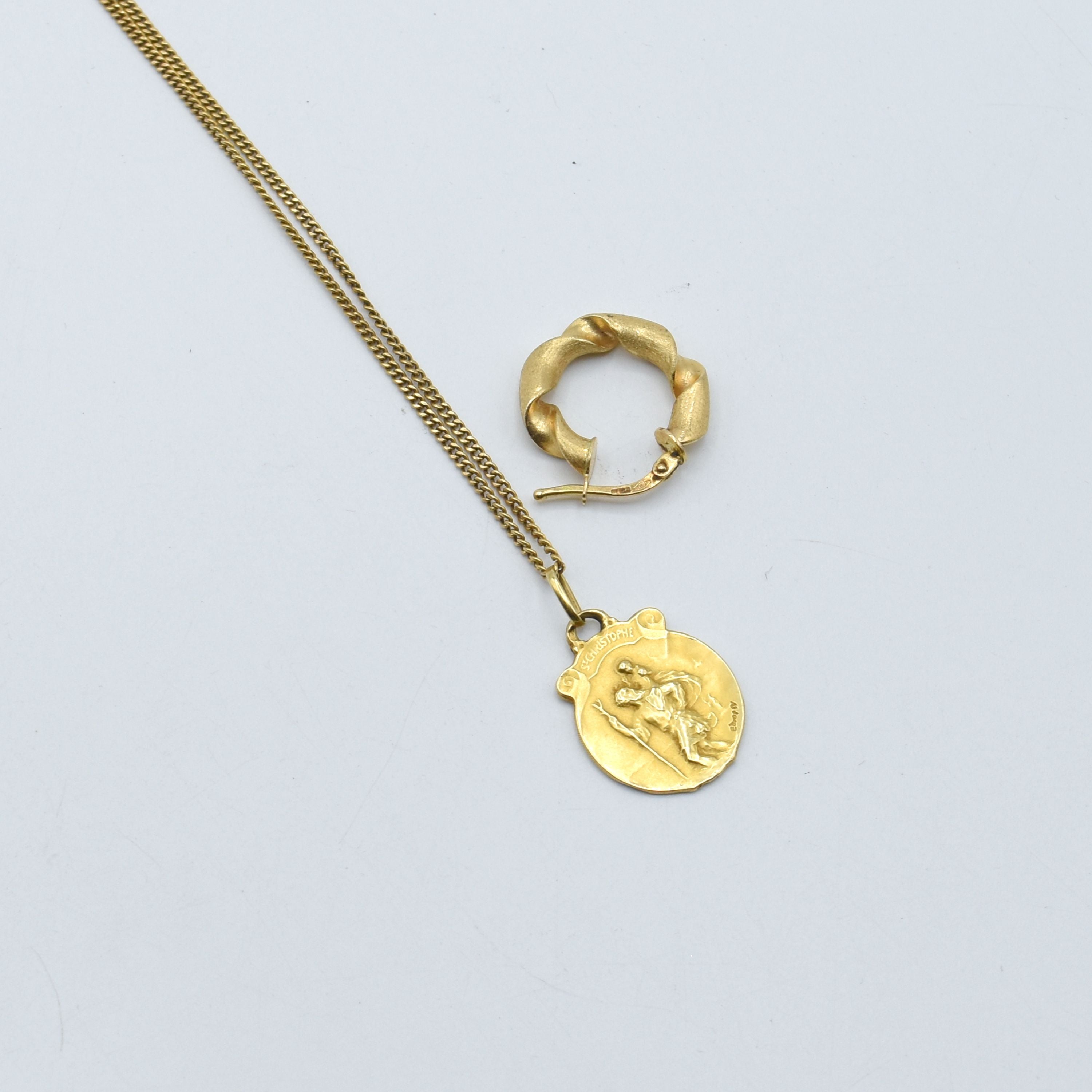 Collier, pendentif et 1 boucle d'oreille en or jaune 18 ct (abîmés, bosselés) - 5.6 g (44 cm)