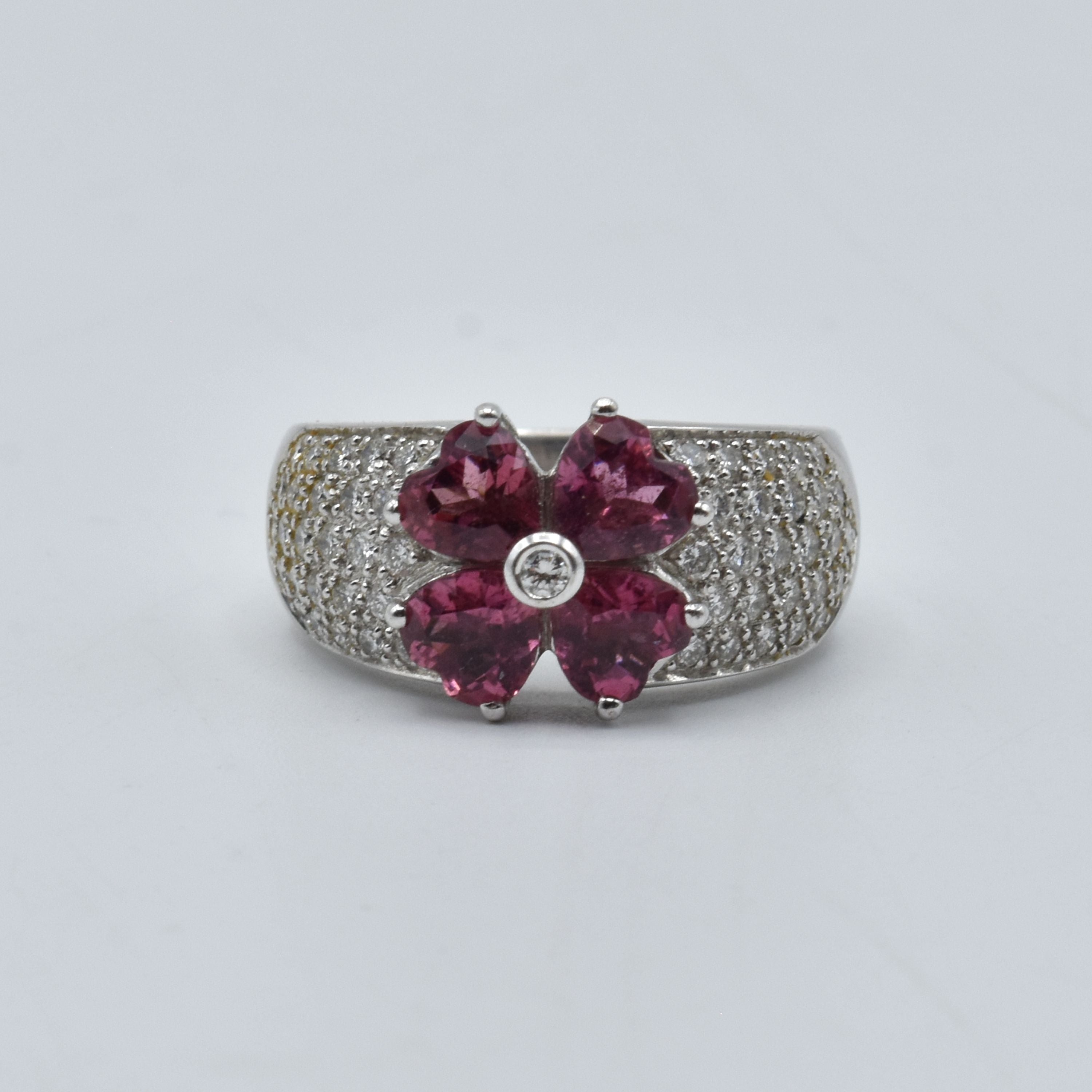 Bague en or blanc 18 ct sertie de 53 brillants +/- 0.80 ct (pierres de couleur) - 9.5 g (Taille: 53.5)
