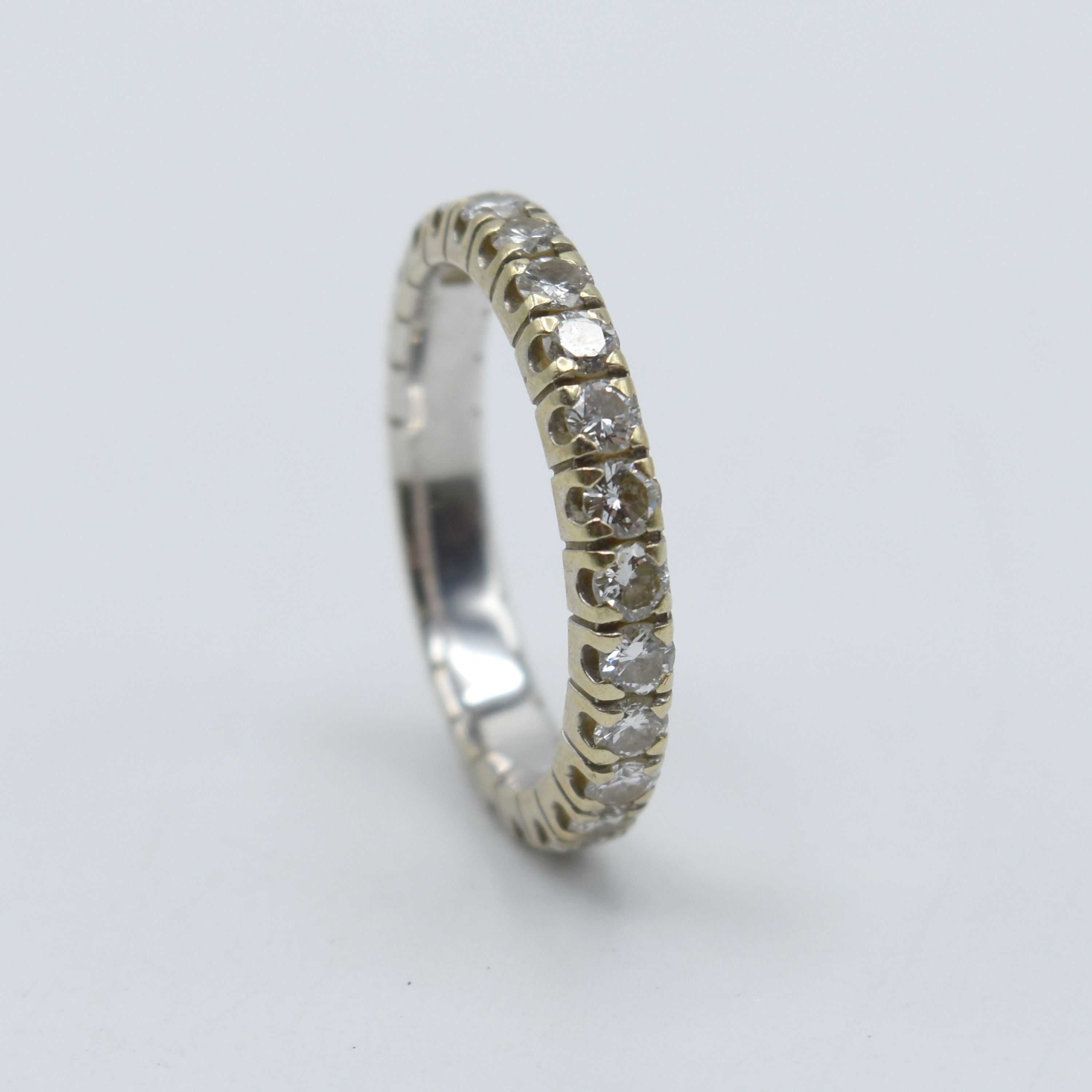 Alliance américaine en or blanc 18 ct sertie de 25 brillants +/- 1.75 ct - 3.7 g (Taille: 55)