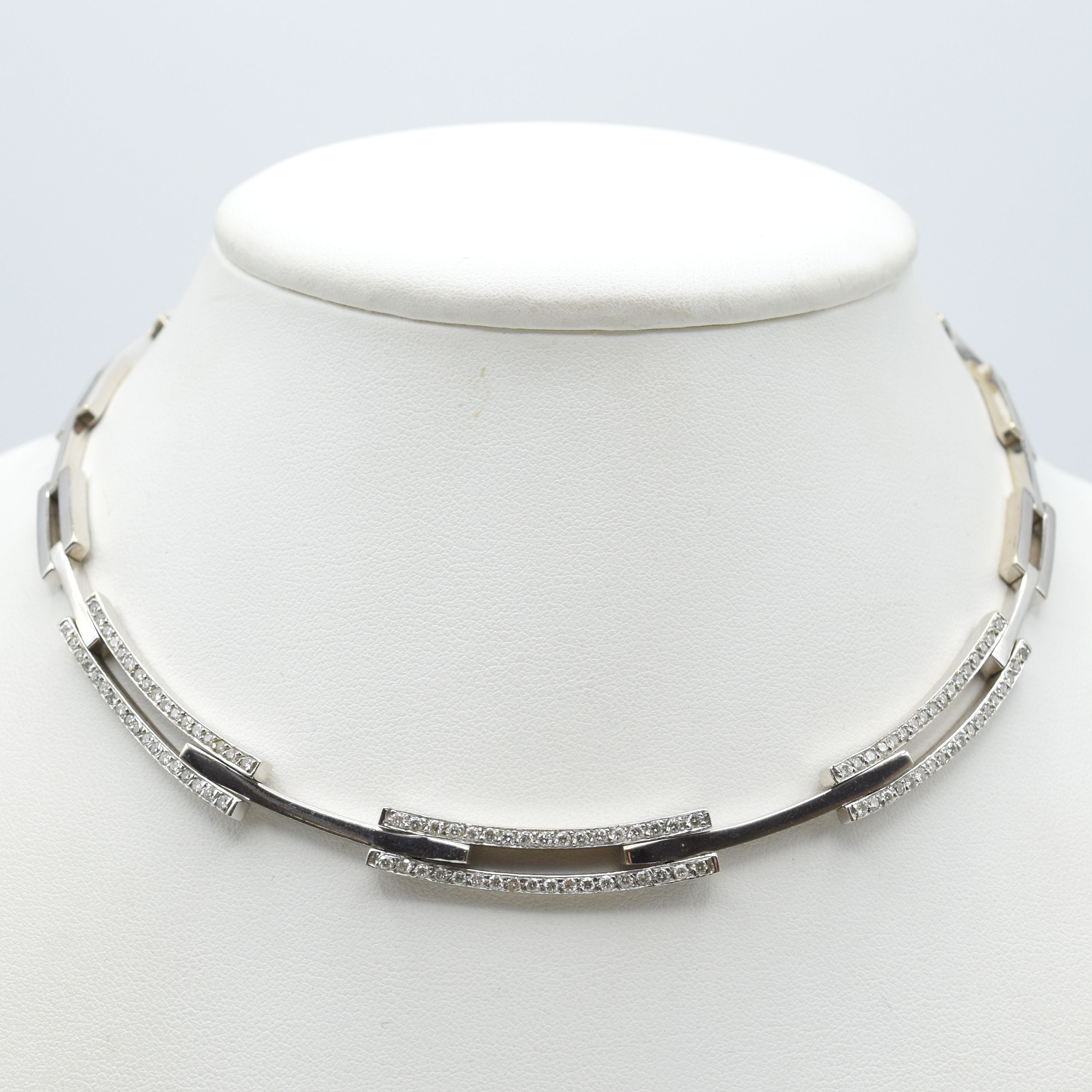 Collier semi-rigide en or blanc 18 ct serti de 105 brillants +/- 2 ct - 47.7 g (+/- 40.5 cm)