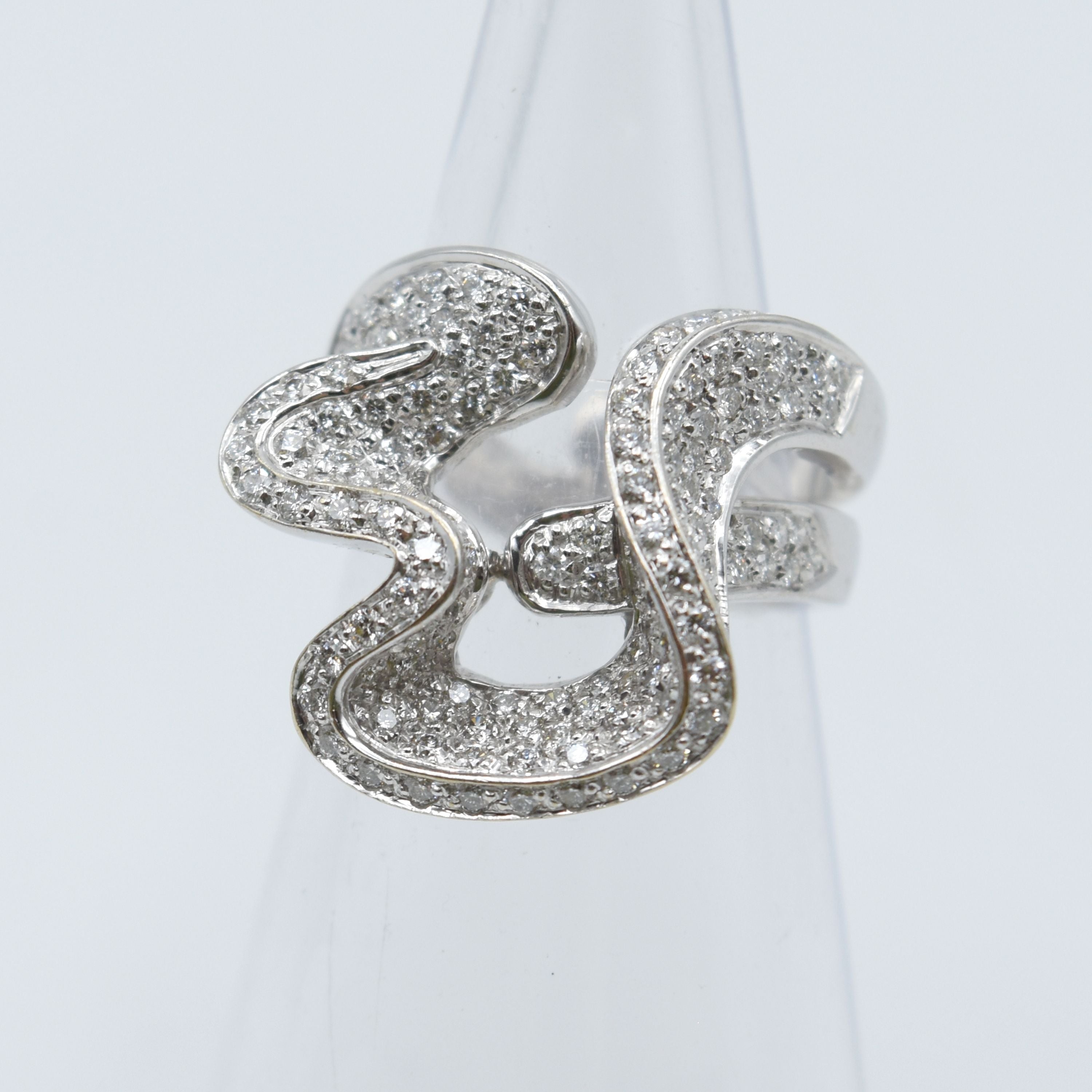 Bague en or blanc 18 ct sertie de 128 brillants +/- 1.28 ct (griffée) - 12.4 g (Taille: 57)