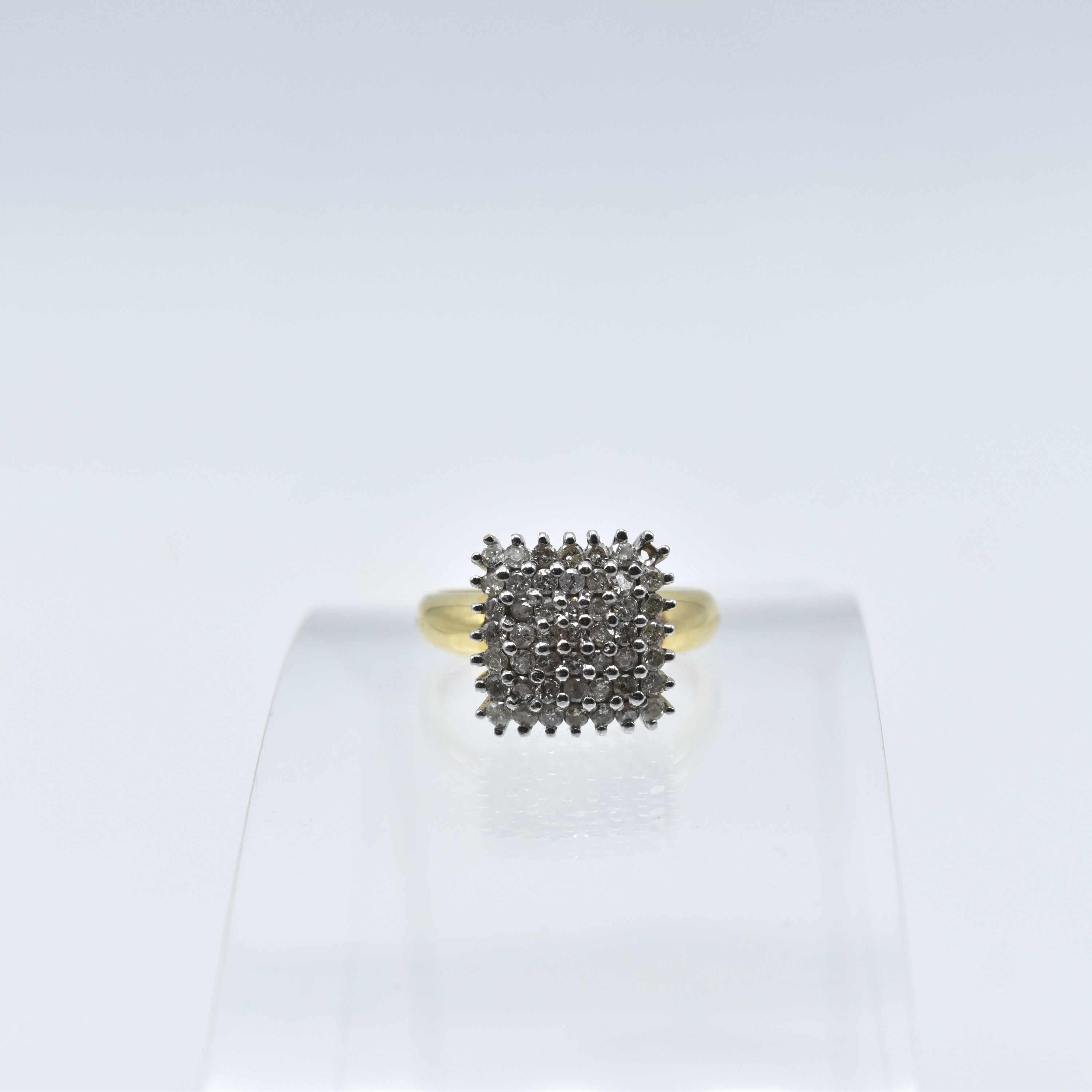 Bague en or jaune et blanc 18 ct sertie de 48 brillants +/- 0.70 ct (pierre manque, pierres ébréchées) - 5.6 g (Taille: 54)