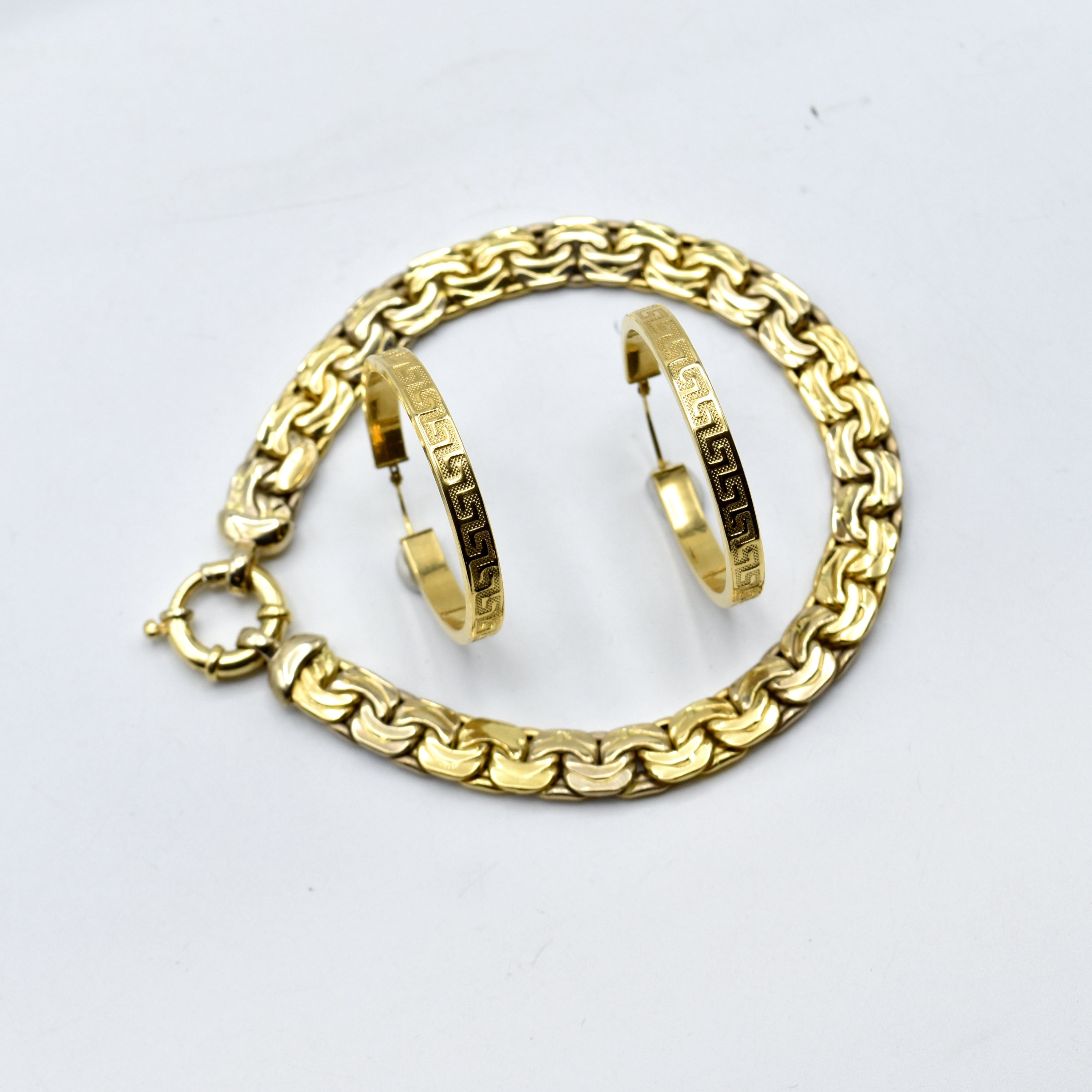 Bracelet et 2 boucles d'oreilles en or jaune et blanc 18 ct (légèrement bosselé) - 16.7 g (21 cm)