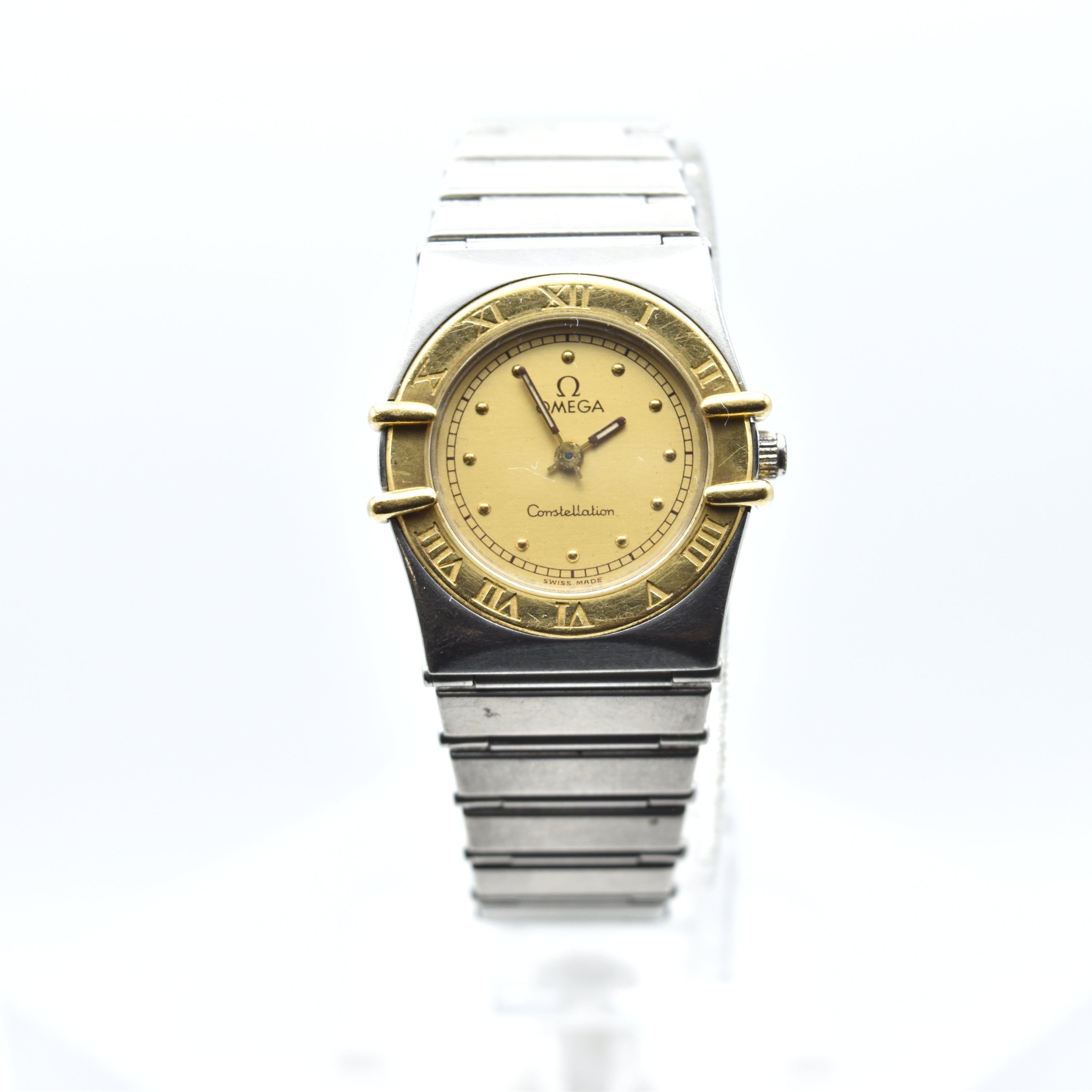 Bracelet-montre dame en acier et or OMEGA Constellation quartz (abîmée) (+/- 16 cm)