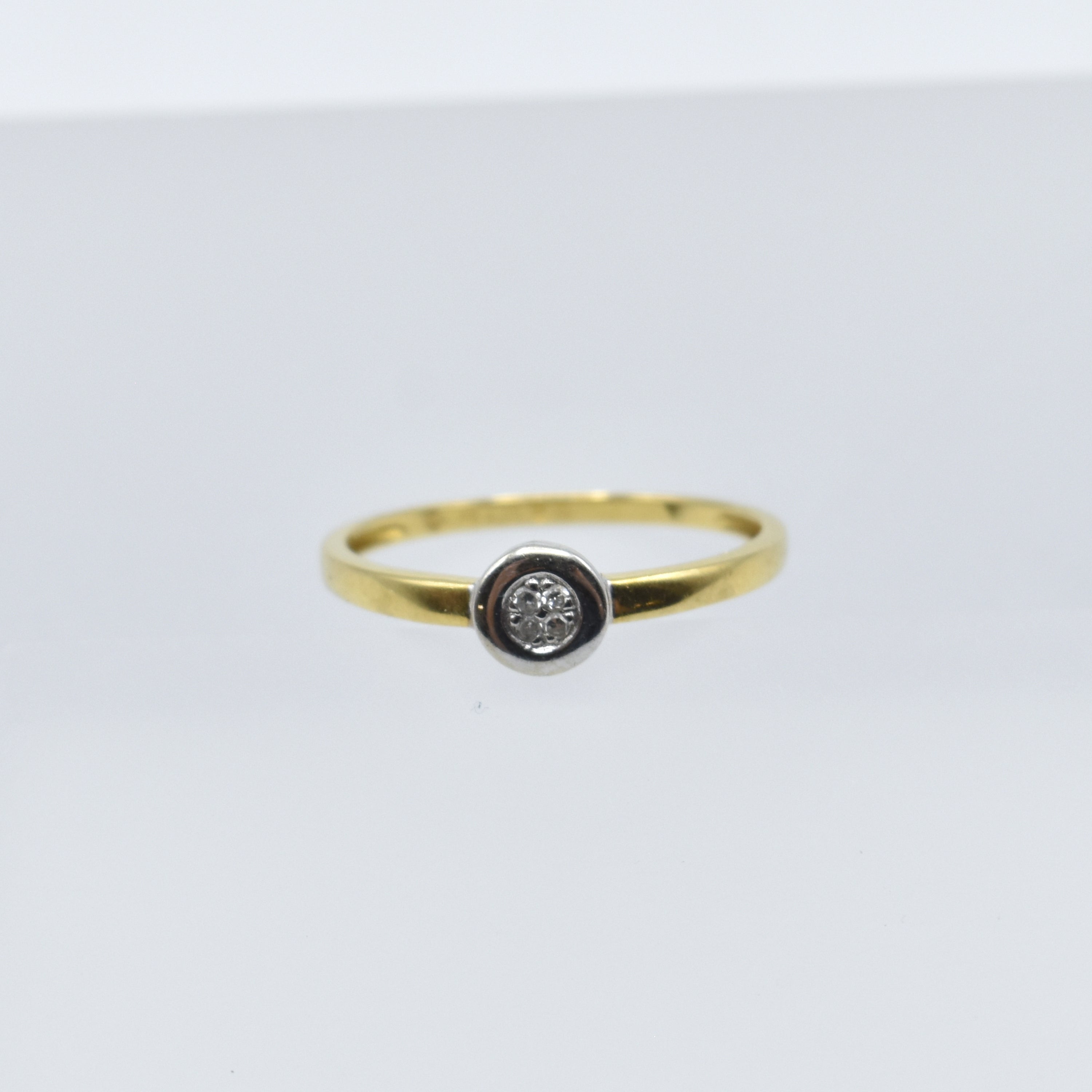 Bague en or jaune et blanc 18 ct sertie de 4 diamants taille 8/8 +/- 0.04 ct - 1.5 g (Taille: 54)