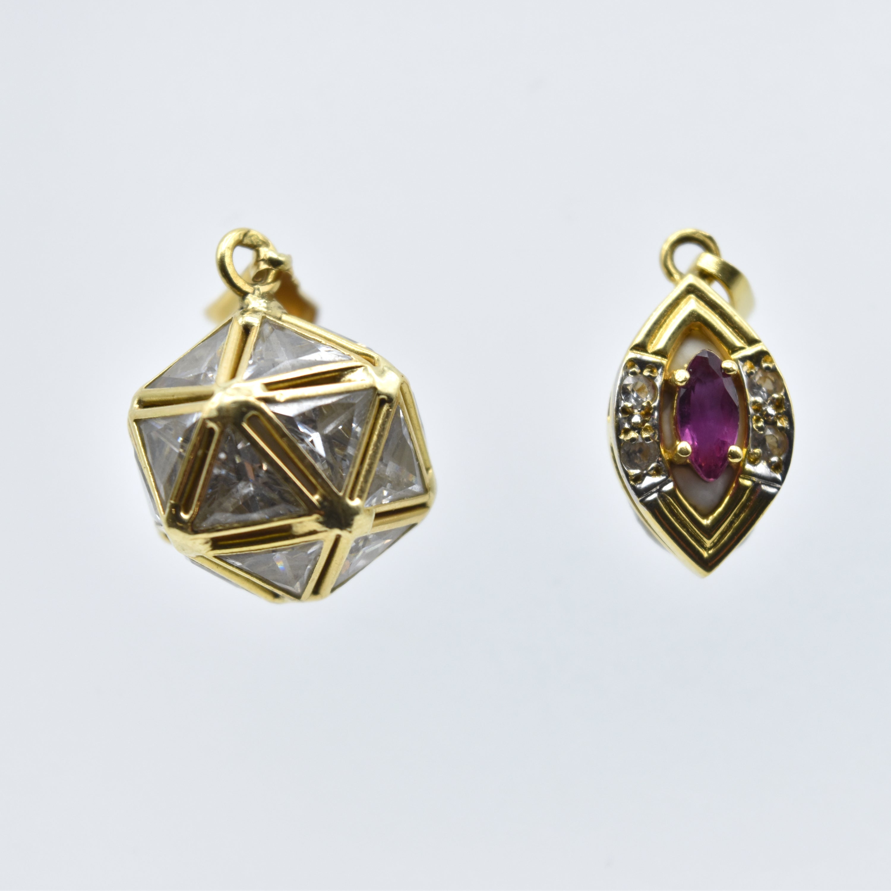 2 pendentifs en or jaune 18 ct (pierres fausses, pierre de couleur, soudures en or jaune 14 ct, bosselé) - 5.8 g brut
