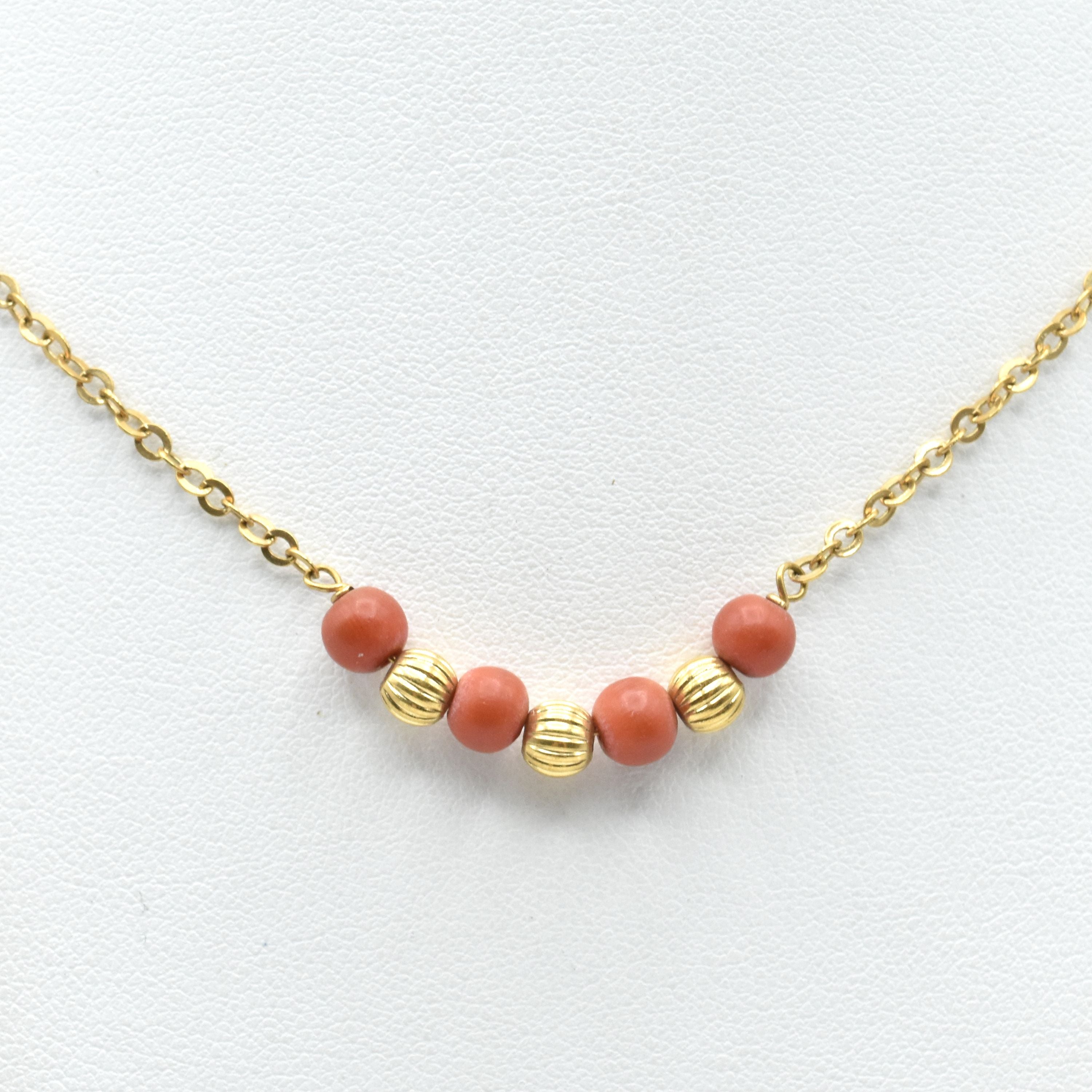 Collier en or jaune 18 ct serti de coraux - 4.9 g brut (44 cm)