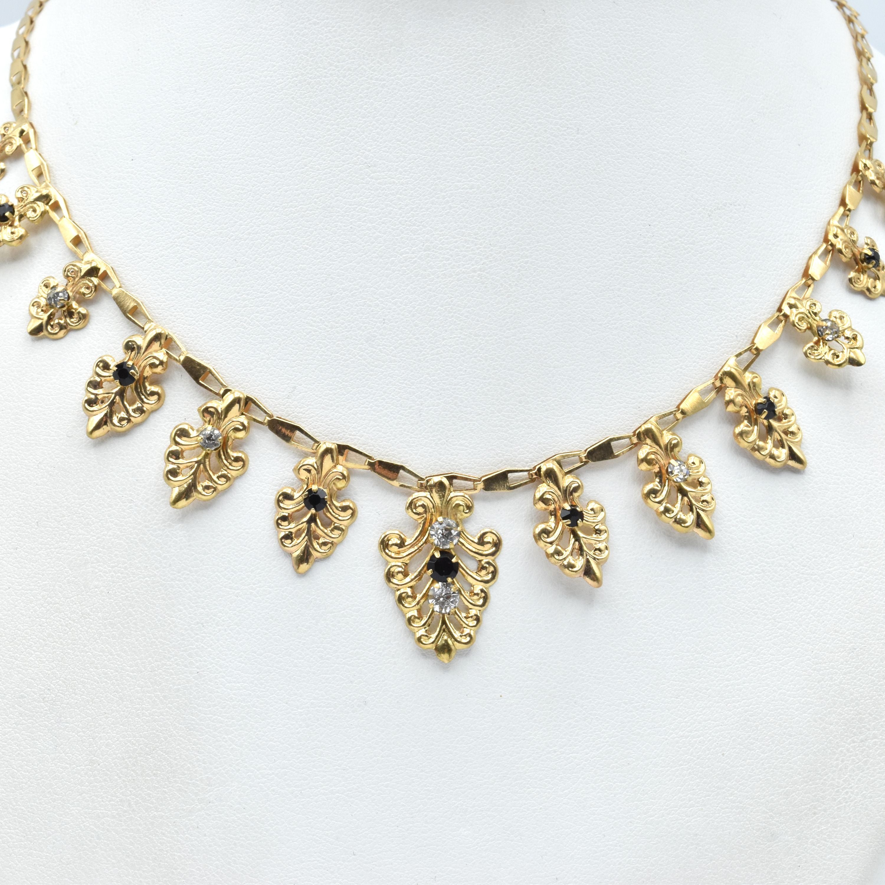 Collier en or jaune 18 ct (pierres fausses, pierres de couleur, bosselé) - 10.6 g brut (50 cm)