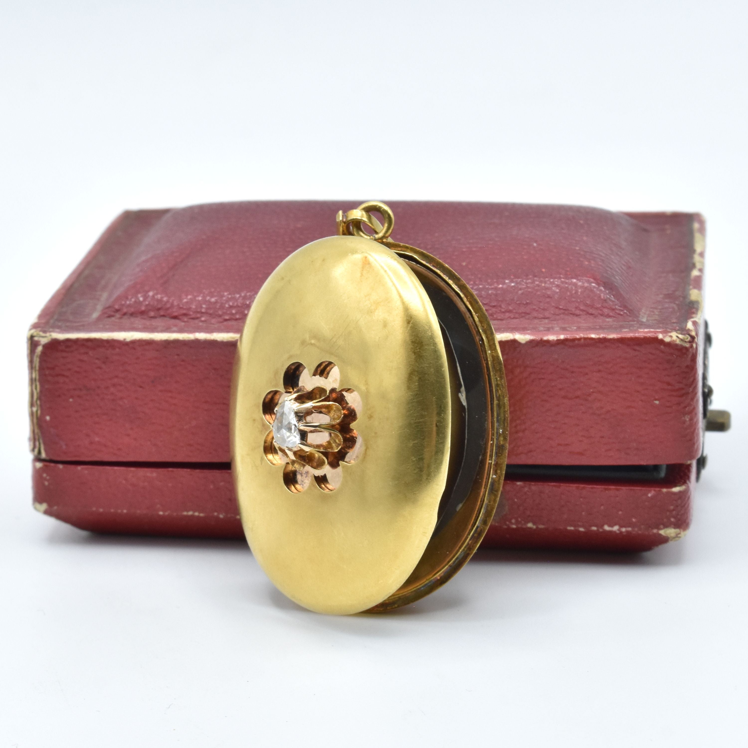 Pendentif/porte-photo en or jaune 18 ct serti d'1 rose de diamant (verre, légèrement abîmé) - 19.1 g brut + écrin d'origine (abîmé)