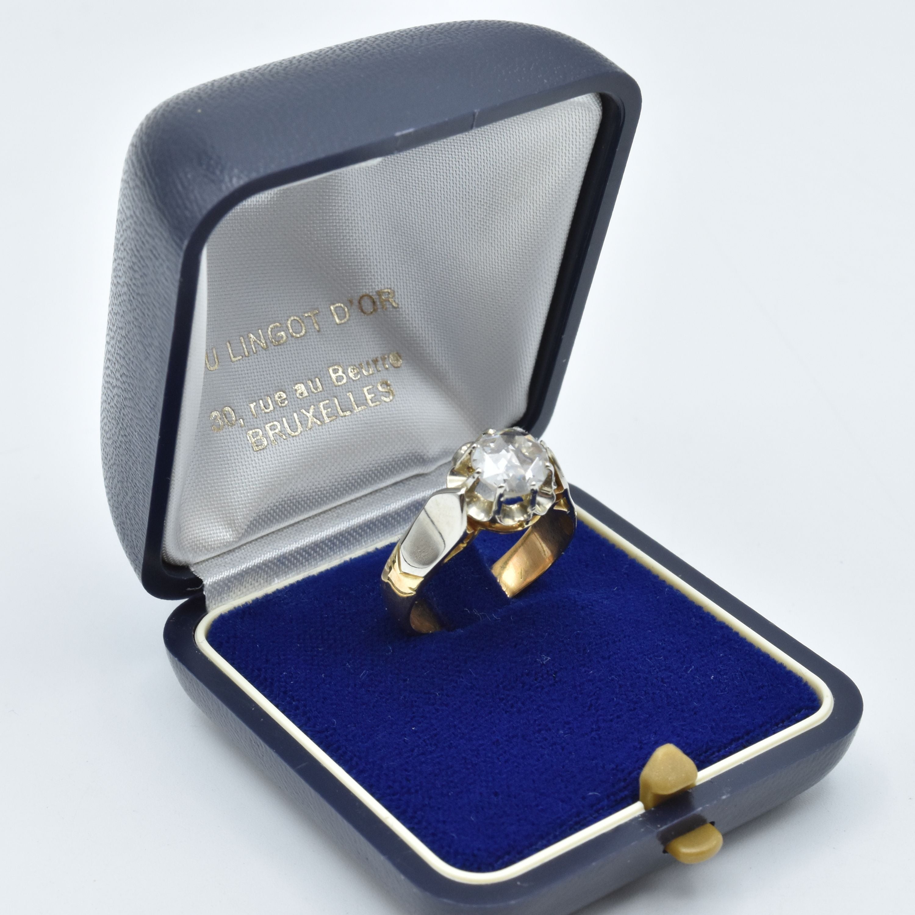 Bague en or jaune et blanc 18 ct sertie d'1 rose de diamant (pierre très légèrement ébréchée) - 5.2 g (Taille: 53)