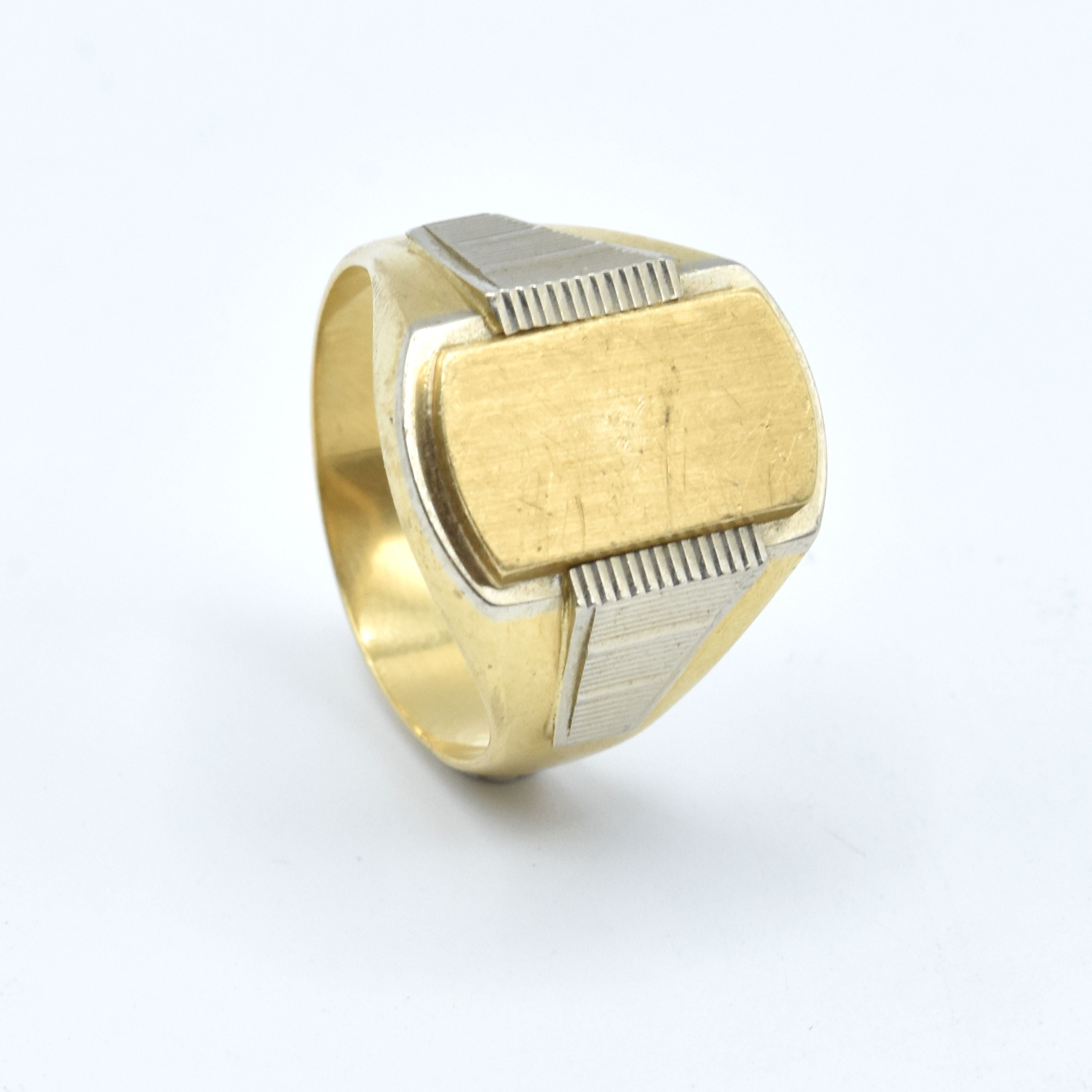 Chevalière en or jaune et blanc 18 ct - 10.2 g (Taille: 59)
